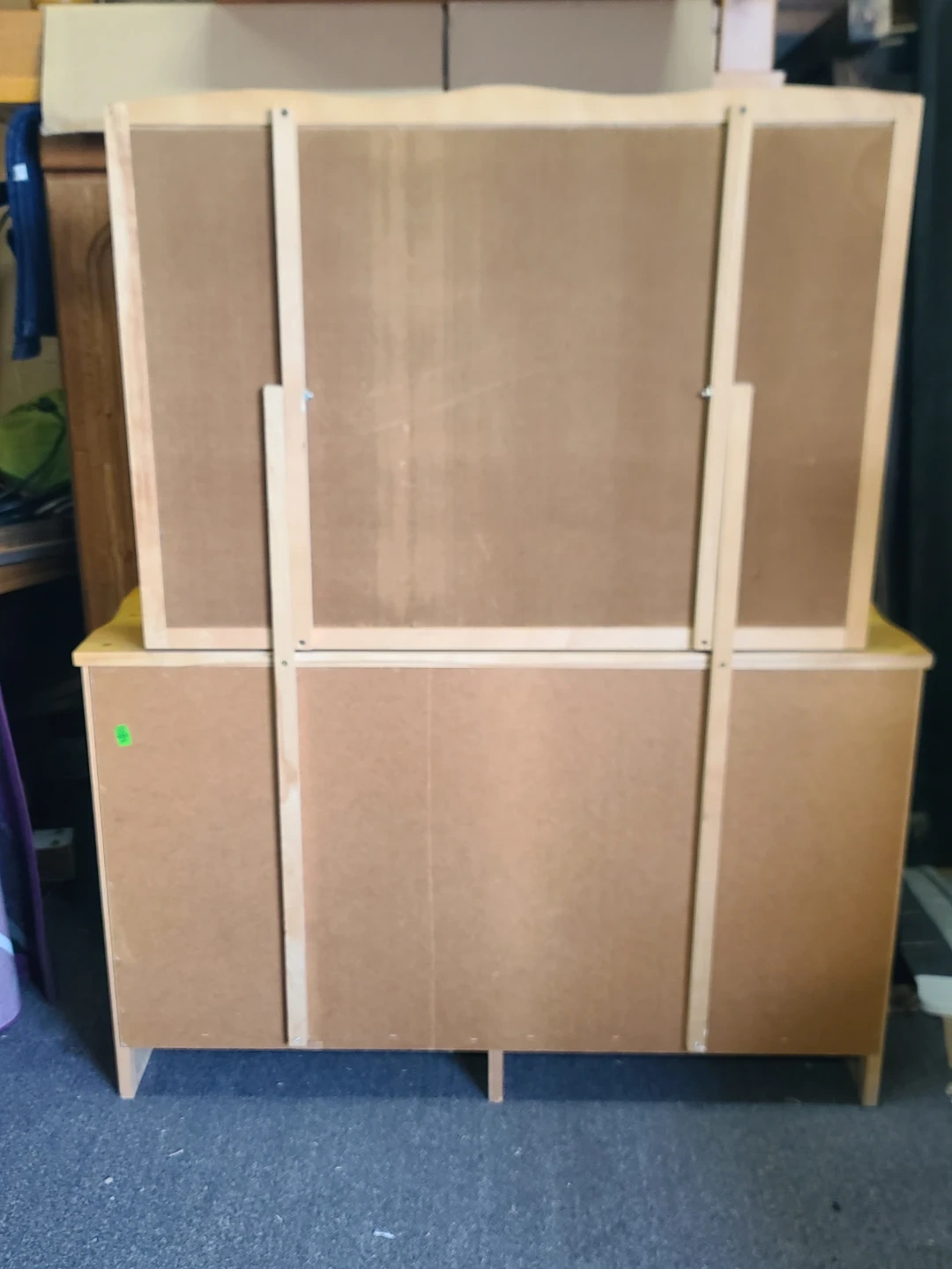 Classic light wood dresser with mirror. Has six drawers with antique-style pulls. Mirror is detachable. This is a dresser with a mirror attached. Some surface wear is visible on the top. Measurements: W 48 1/2" X D 16" X H 30". Delivery can be arranged. Viewing and pickup by appointment.