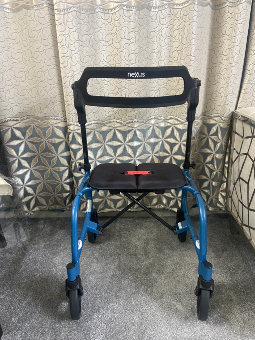 Selling a Nexus upright walker in blue. It's in great condition and ready to help you get around comfortably! The seat provides a nice place to rest when needed.