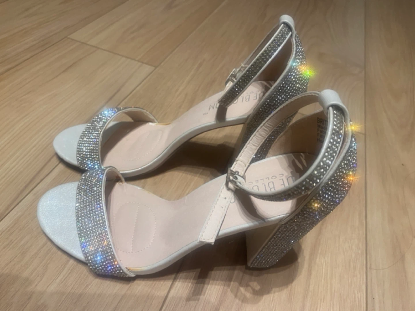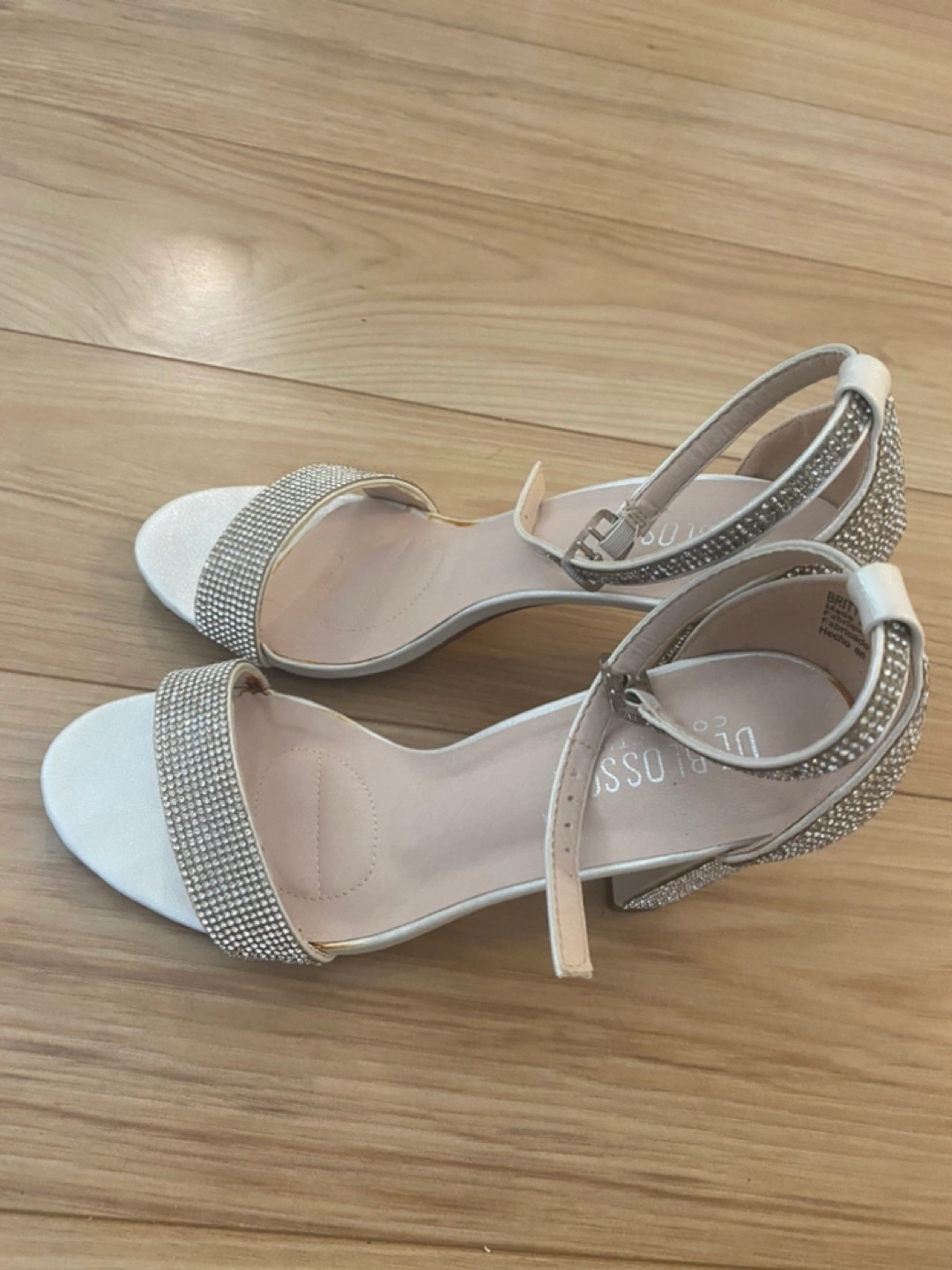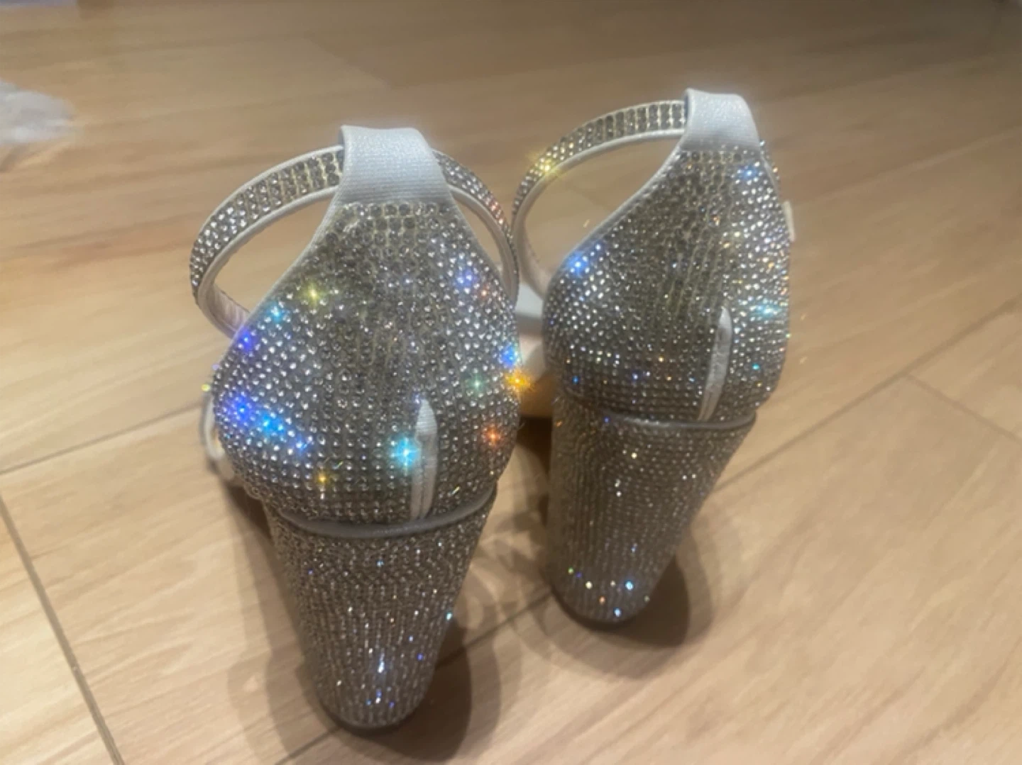 Super Beautiful white wedge sandals Covered in sparkling rhinestones. Ankle strap closure. Wedge heel.