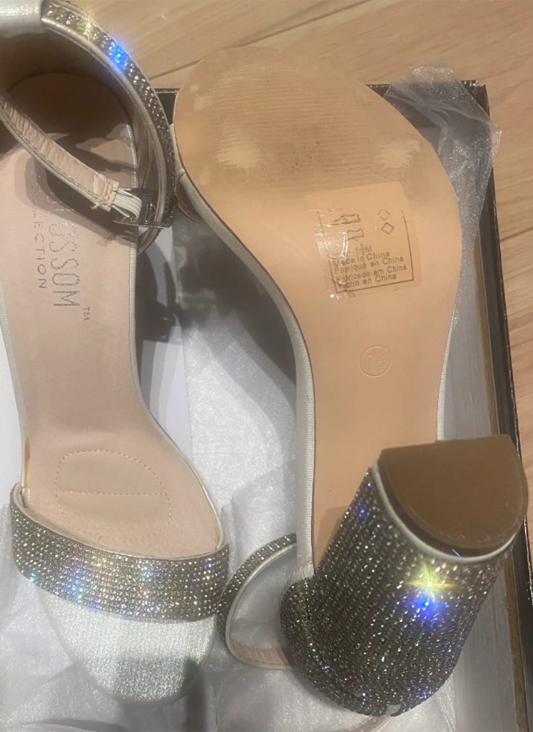 Super Beautiful white wedge sandals Covered in sparkling rhinestones. Ankle strap closure. Wedge heel.