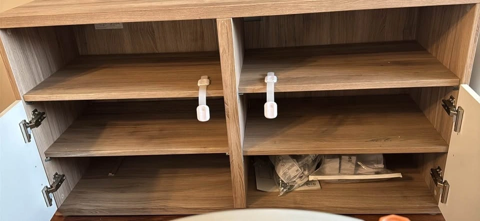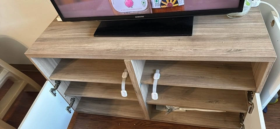 TV Stand with Shelves and Drawers Wood Grain & White (Urgent mov