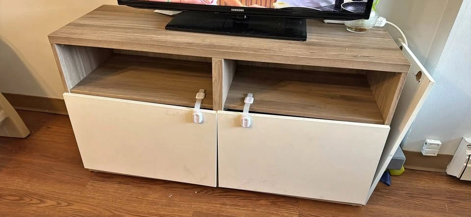 TV Stand with Shelves and Drawers Wood Grain & White (Urgent mov
