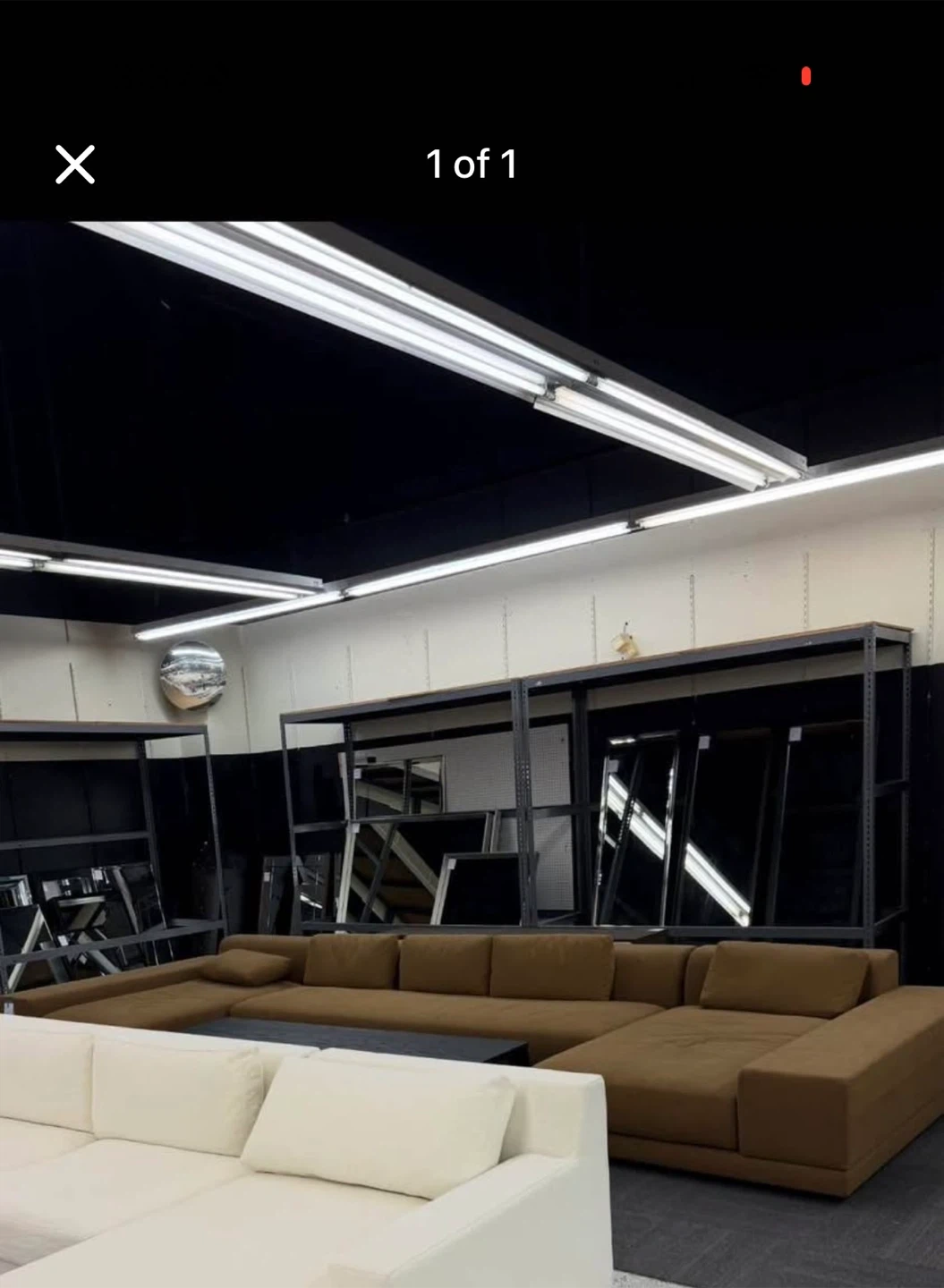 This spacious U-shaped sectional sofa features a rich brown upholstery. It's a large piece, perfect for accommodating many people. The sofa's design is modern and clean.