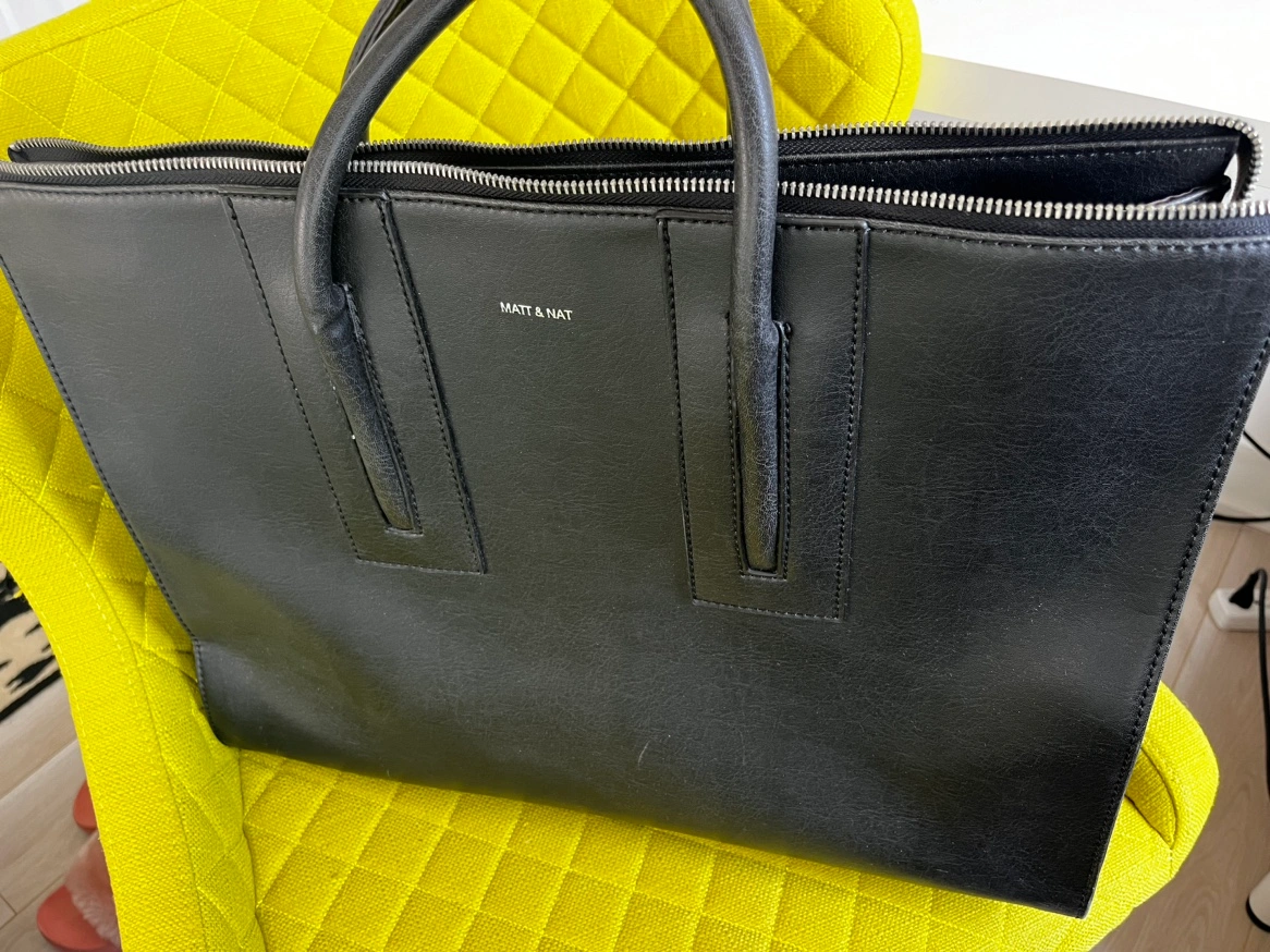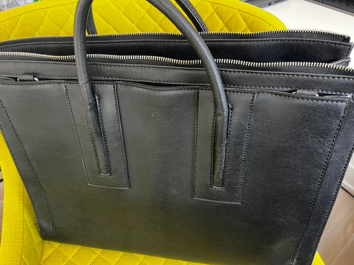 Can easily fit 13”/15” laptop, has a compartment inside for it, smartphone pocket.