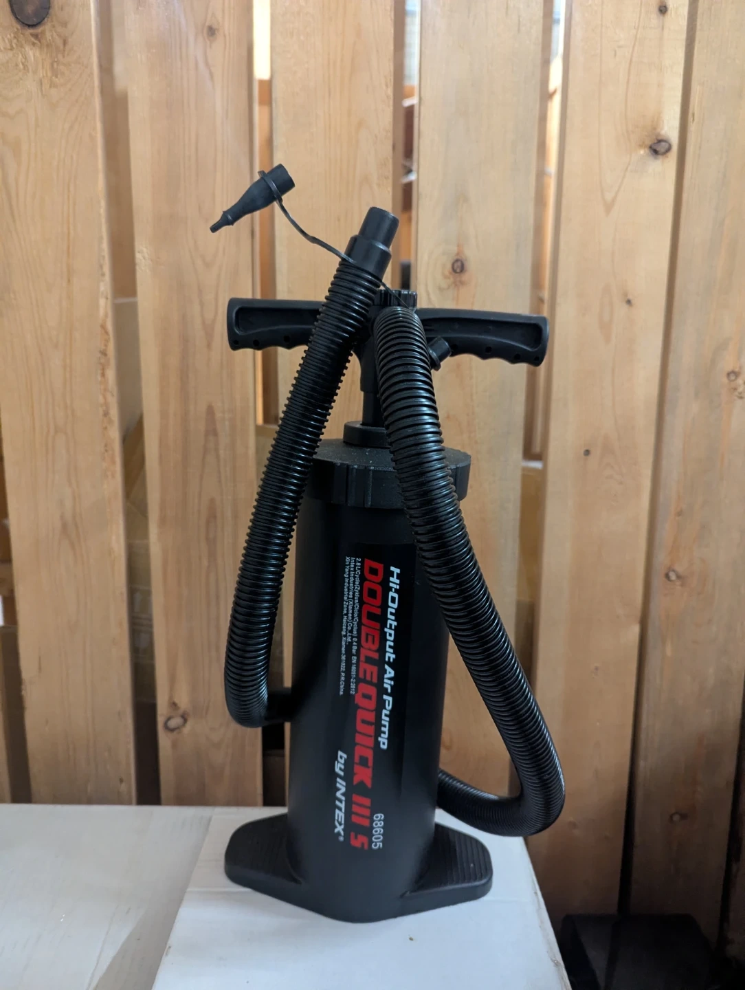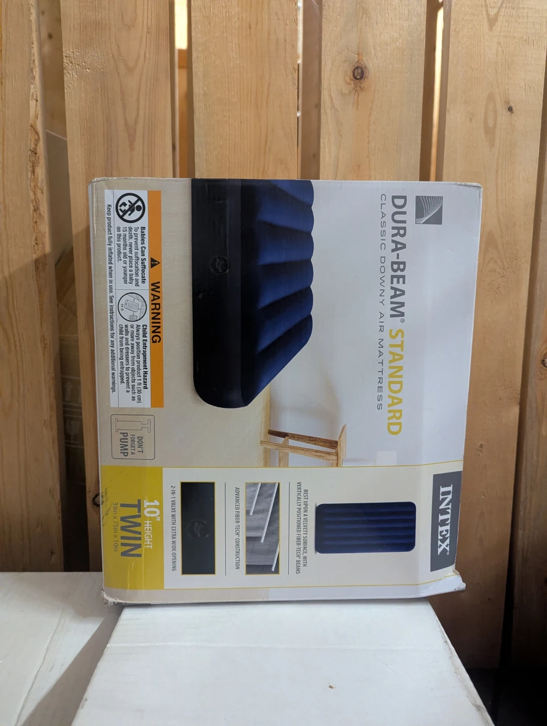 This Intex Dura-Beam Standard air mattress is a twin size. It includes the Double Quick III S hand pump for inflation and deflation. This is great for camping trips or when you have extra guests staying over!