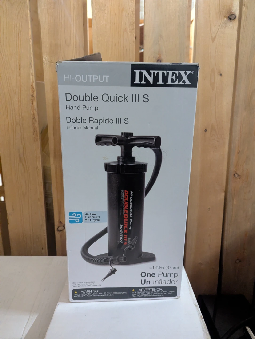This Intex Dura-Beam Standard air mattress is a twin size. It includes the Double Quick III S hand pump for inflation and deflation. This is great for camping trips or when you have extra guests staying over!