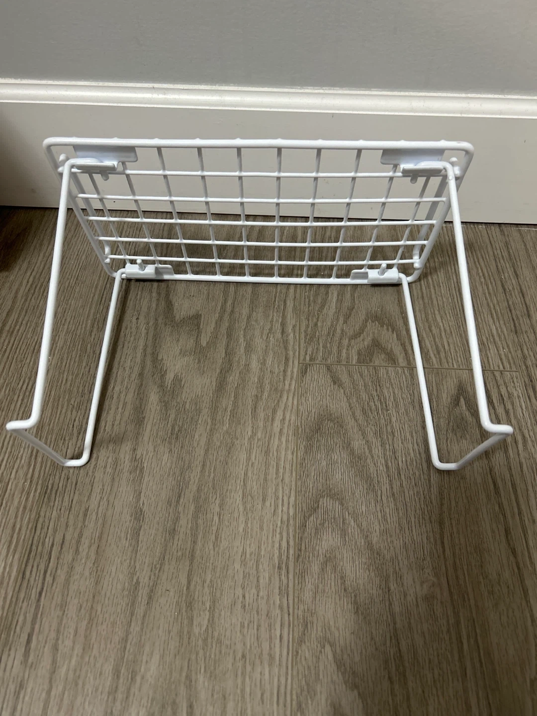 Selling a handy white wire shelf organizer! It's in great shape and perfect for adding some extra storage space in your kitchen, bathroom, or closet