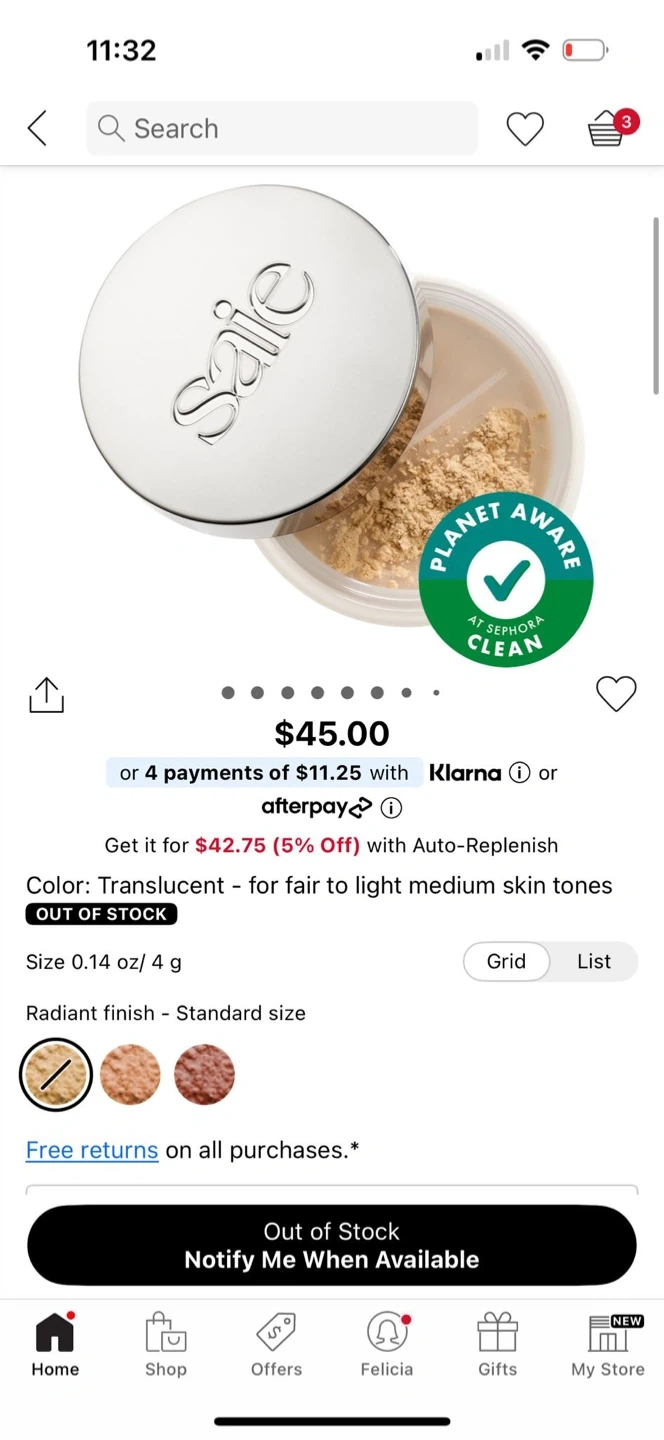 Selling a Saie Airset Radiant Loose Setting Powder in translucent. It's a lightweight powder that helps set your makeup and gives a radiant finish. The size is 4 g / 0.14 oz