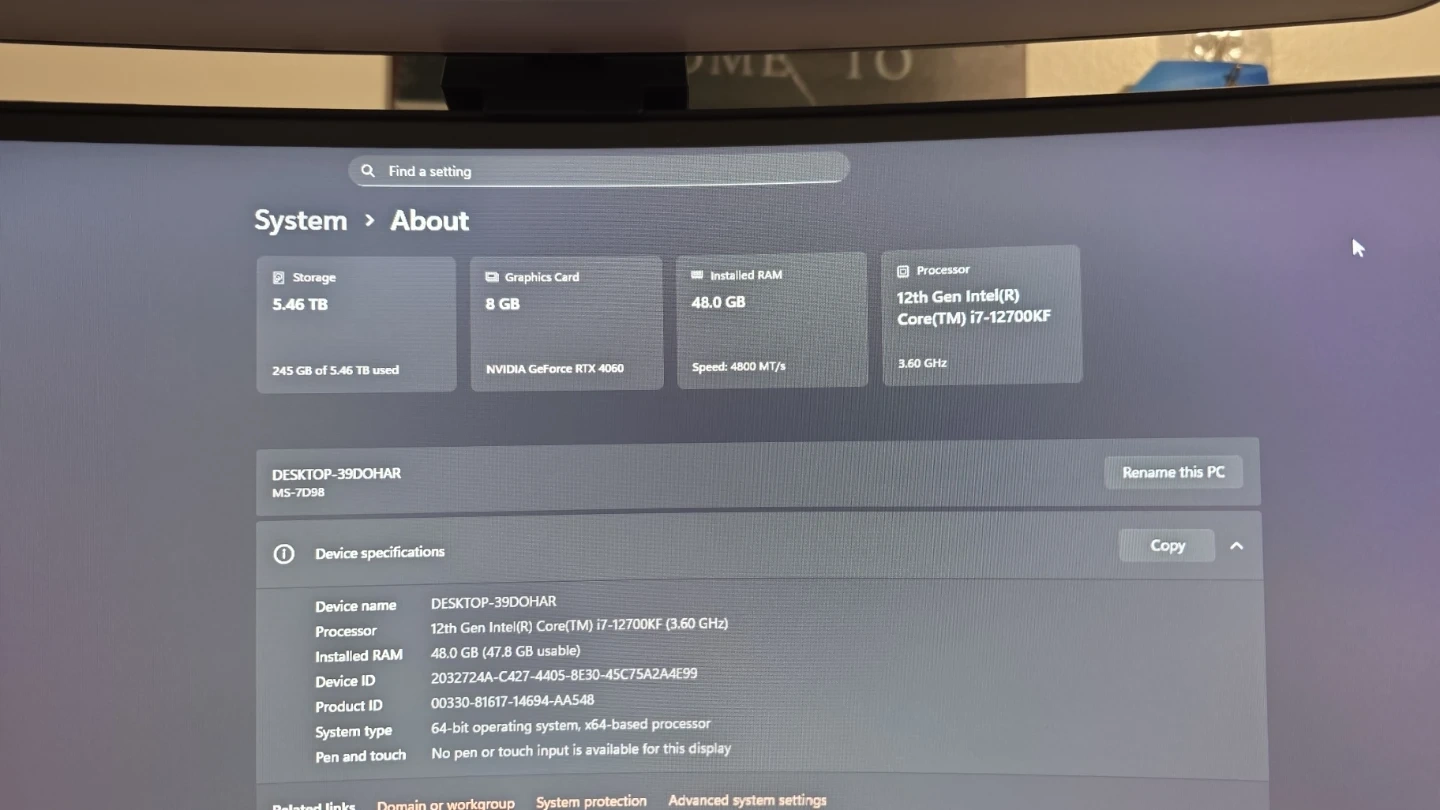 Selling a powerful gaming PC with an Intel i7 12700KF processor, NVIDIA RTX 4060 8GB graphics card, and 48GB of DDR5 RAM. It features an MSI WiFi motherboard, a fast 2TB M.2 SSD, and a 4TB HDD for ample storage. , A gaming case with 6 RGB fans, and a Corsair CX750 power supply. Comes with a Corsair gaming mouse and keyboard, and Windows 11 Pro is installed. This PC was used for only 2 months and is like new, as it was replaced for a streaming setup. Most original boxes are still available.