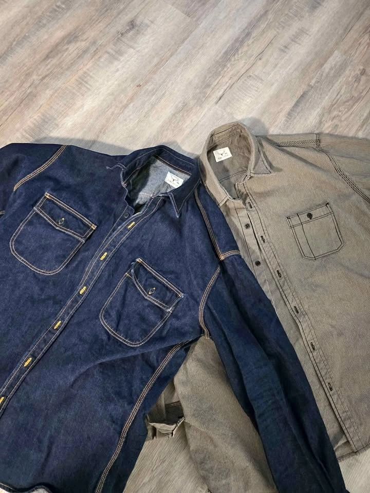 Selling a bundle of two Nama Denim Custom Heritage Shirts in XXL. These were small-batch ordered and are in pristine condition, having been worn only a handful of times. The denim is still crisp and ready for a personal break-in.