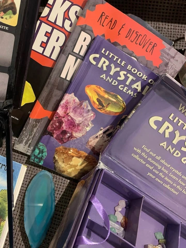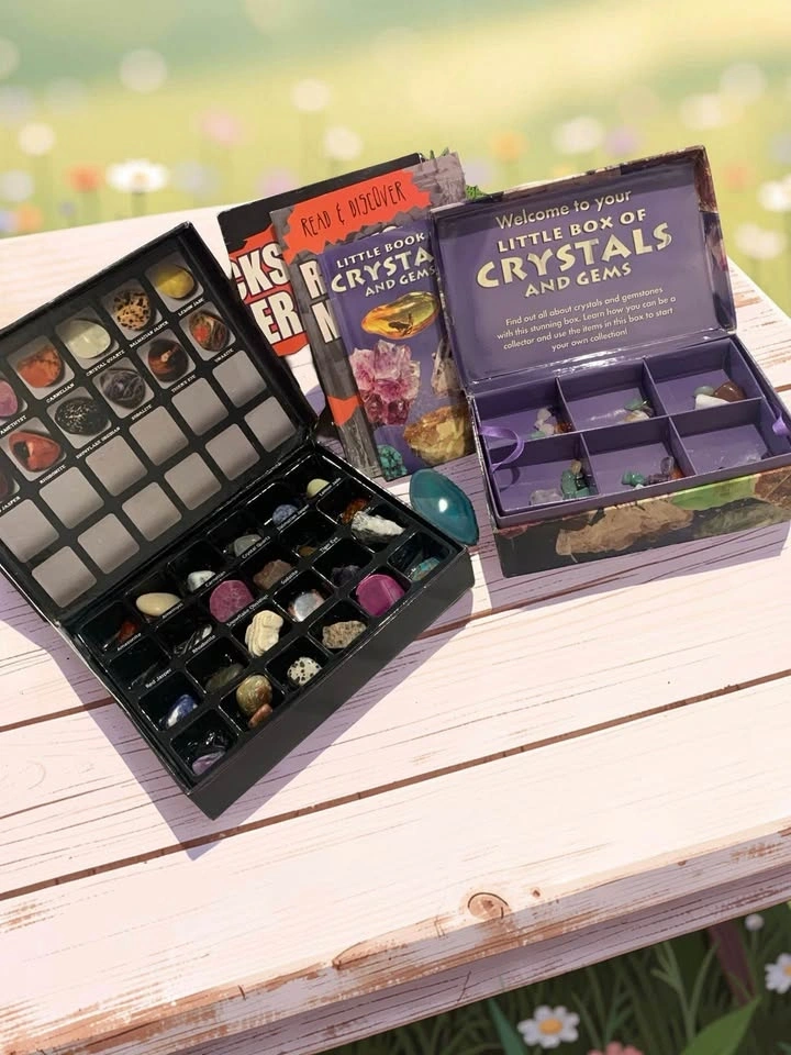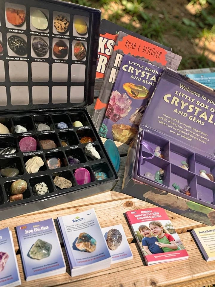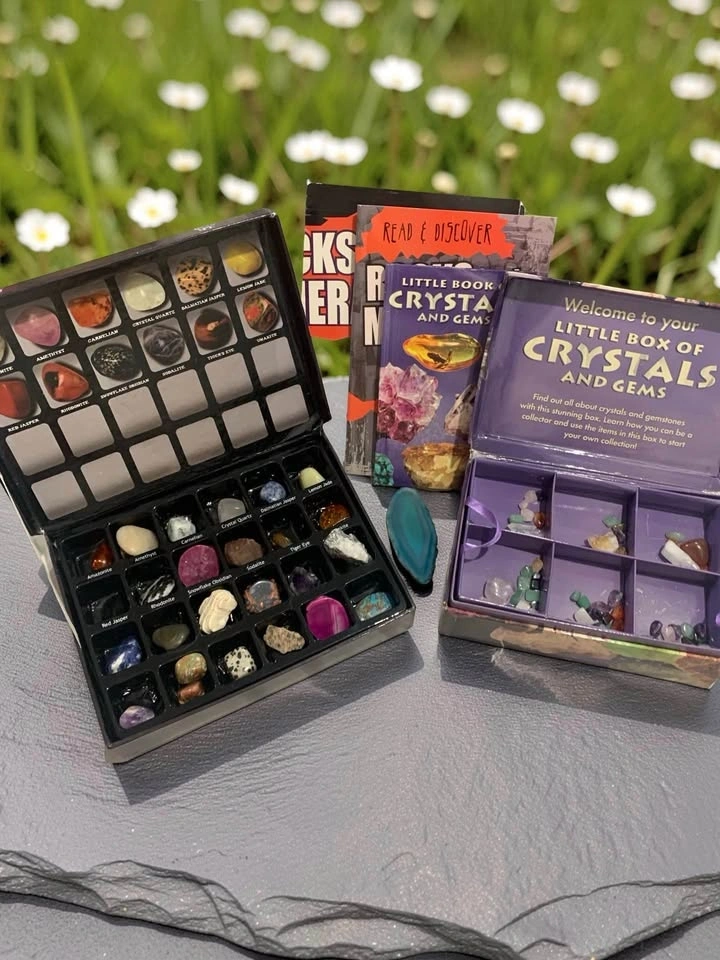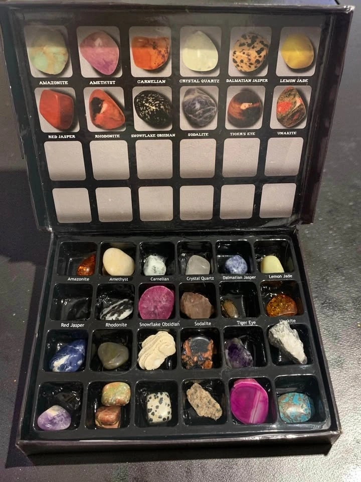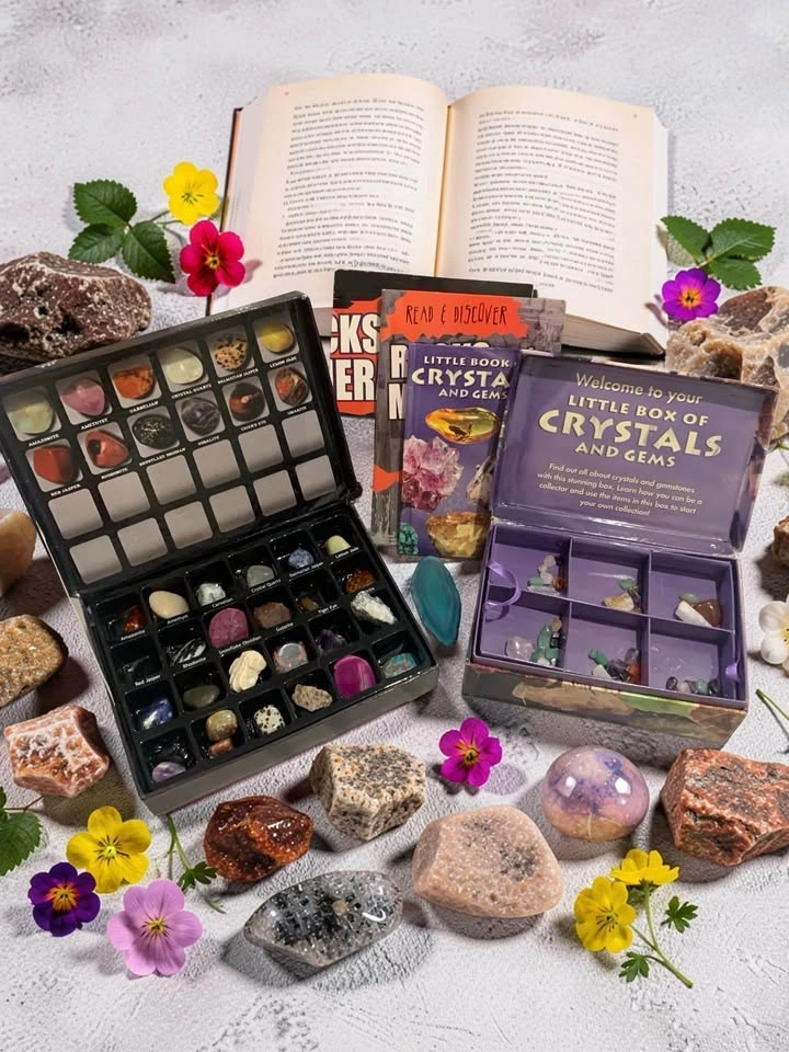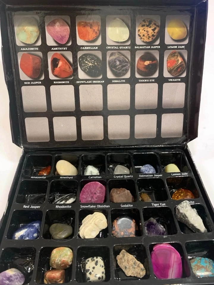This beautiful set includes two amazing collections: a Little Box of Crystals and Gems with many small tumbled stones, perfect for collecting or gifting. It also includes a Read & Discover Crystals Set with labeled crystals like Amethyst, Tiger Eye, Sodalite, and more, plus some little books about crystals to learn and explore! Also included are some gorgeous little decorative rocks and a lovely rhinestone bracelet. This collection is only $35 CAD and is perfect for beginners, collectors, or anyone interested in the healing and beauty of crystals!