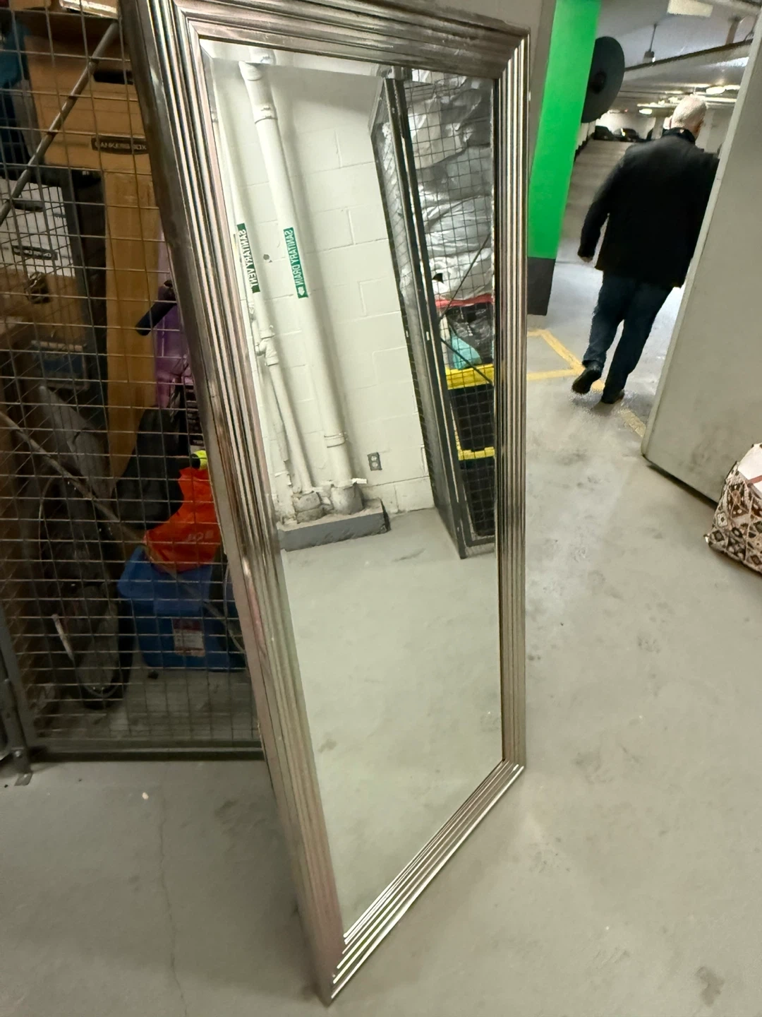 Selling a large mirror with a silver frame. It's in great condition and ready to brighten up any room! The frame adds a touch of elegance and the mirror itself is nice and clear
