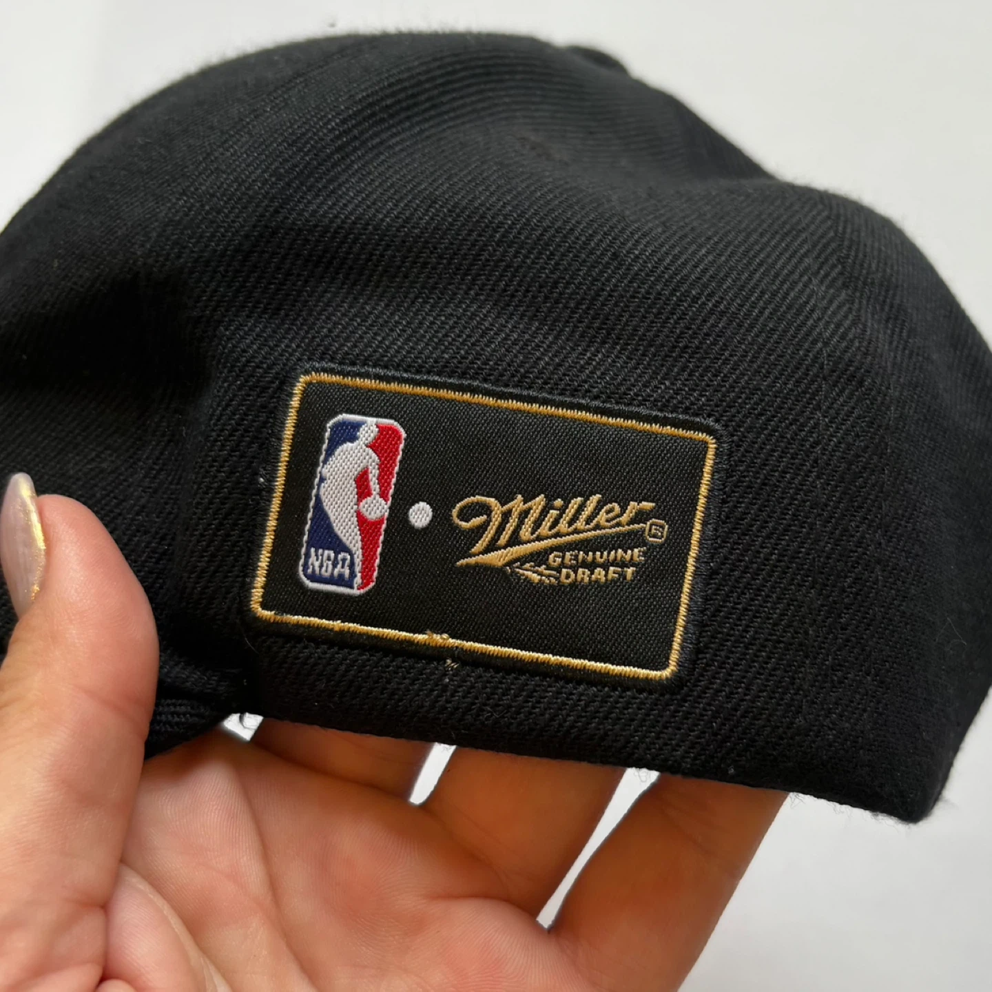 Show your team pride with this Miami Heat NBA Snapback Cap. The hat features the iconic flaming basketball logo embroidered in striking gold thread against a classic black background. This specific edition has a Miller Genuine Draft official patch near the snapback closure, making it a unique piece of NBA memorabilia or fan gear. It has a sturdy, flat brim and an adjustable snapback design for a comfortable, One Size Fits Most fit. Perfect for game day, casual wear, or any Heat fan!