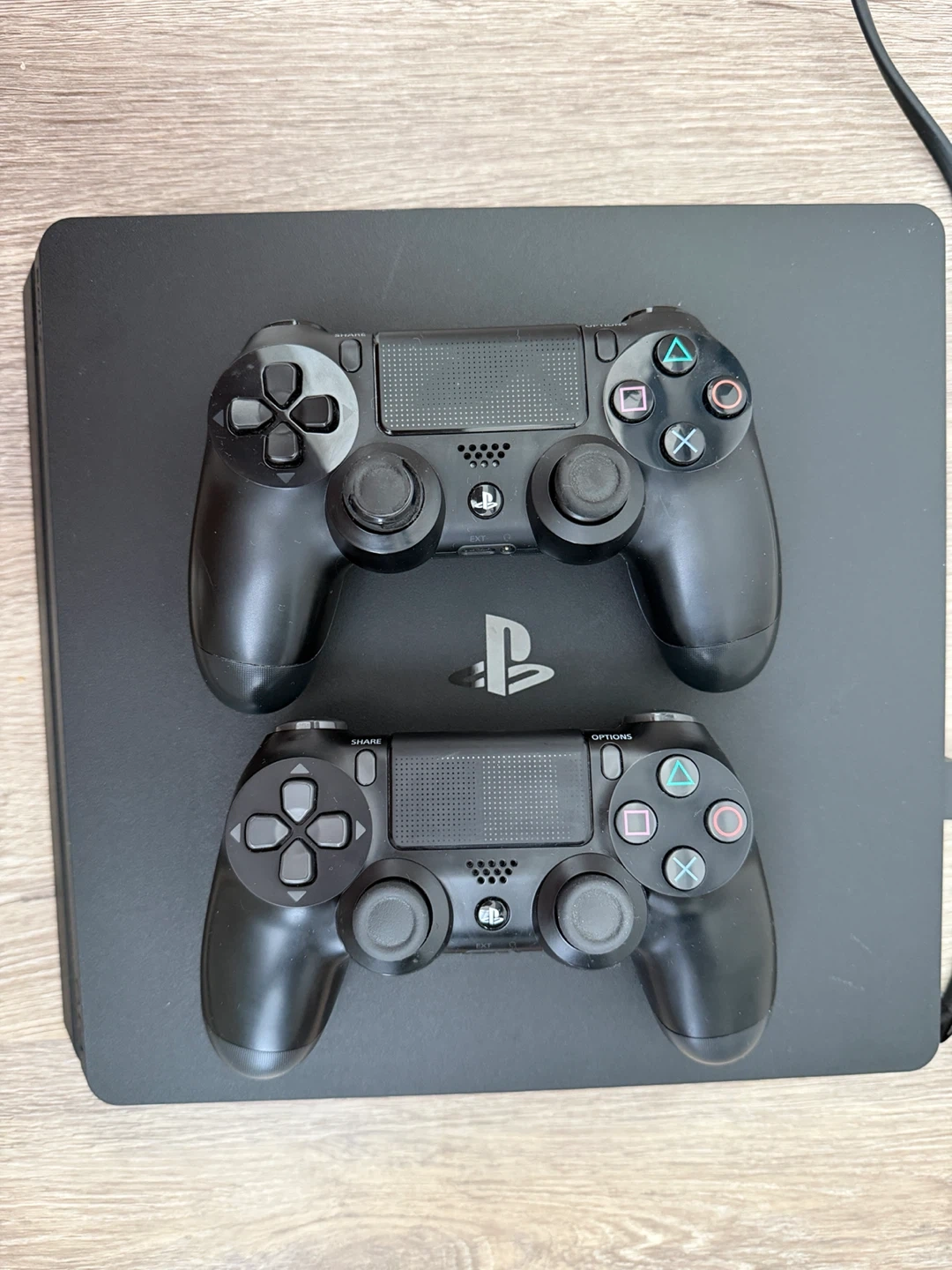 Selling a PlayStation 4 console that comes with two controllers! Great for gaming with friends or family. It's in good condition and ready for a new player to enjoy hours of fun