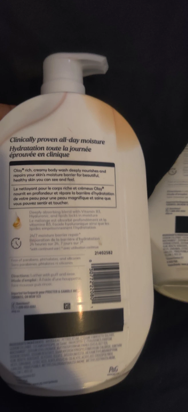 2 olay Ultra Moisture body wash with shea butter nourishes and repairs your skin's moisture barrier. It's formulated with a blend of Vitamin B3, Hyaluronic, and lipids for deep absorption.
