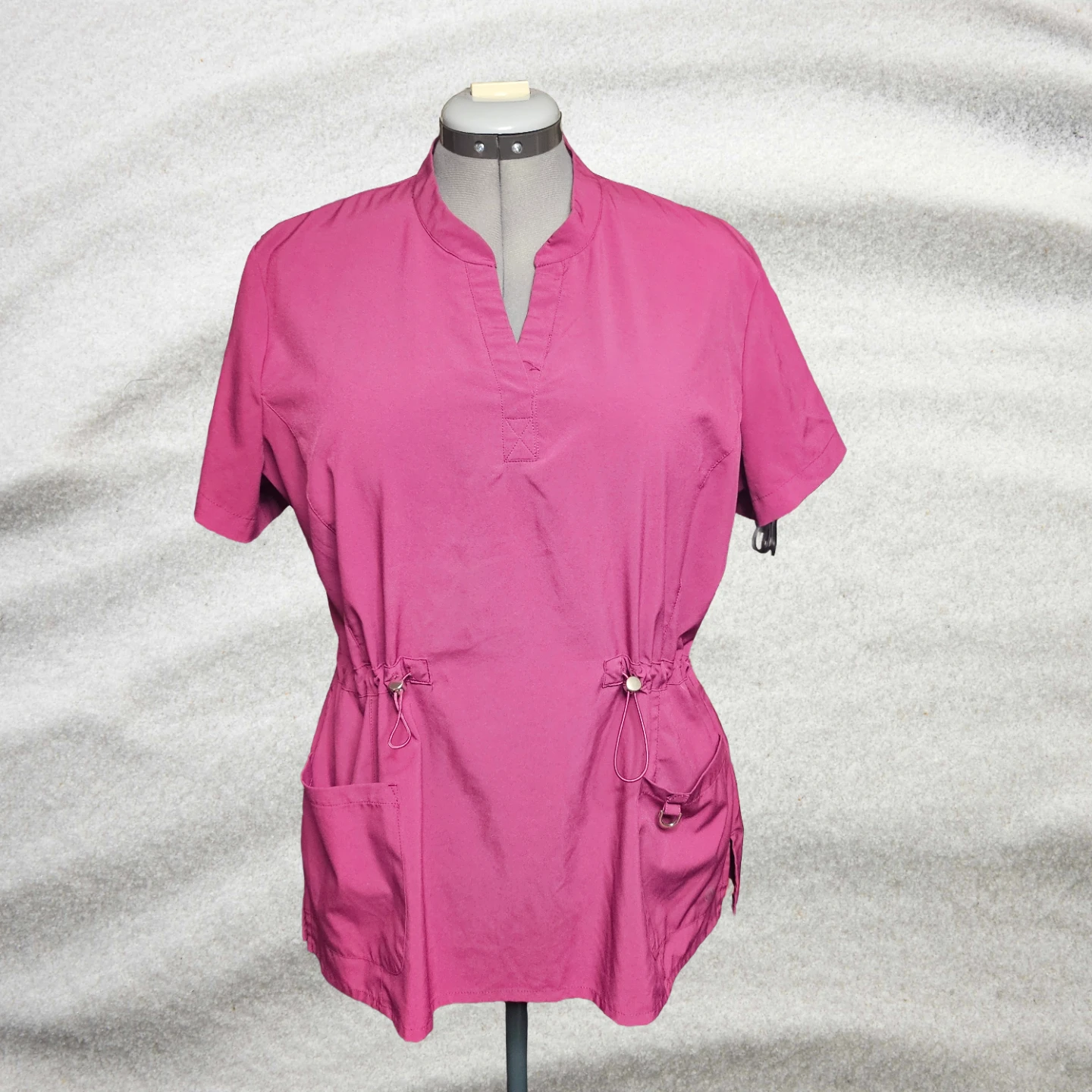 Beautiful raspberry colour. Fitted draw-string waist. Pants are cuffed.
