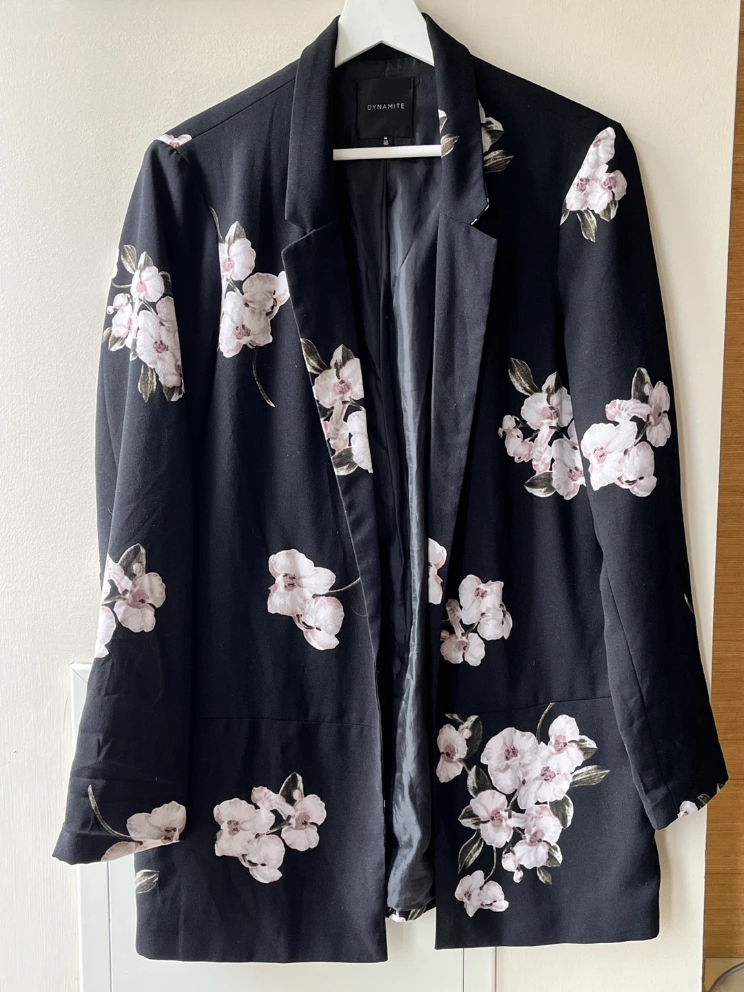 Buy & SellDYNAMITE Floral Blazer - Size MediumDYNAMITE Floral Blazer - Size Medium$8Black blazer by DYNAMITE with a white and pink floral print. Size medium. Great for dressing up an outfit or going to the office!SizeMBrandDYNAMITEWHERE TO MEETSherbourne stationView MapSELLERverifiedLucieRosedale70266 reviews0 chats·0 favorites·11 viewsSEND CHAT TO SELLERHi Lucie! I’m interested in your listing.Hi Lucie! I’m interested in your listing.Get the Karrot app to chatSign In to chat