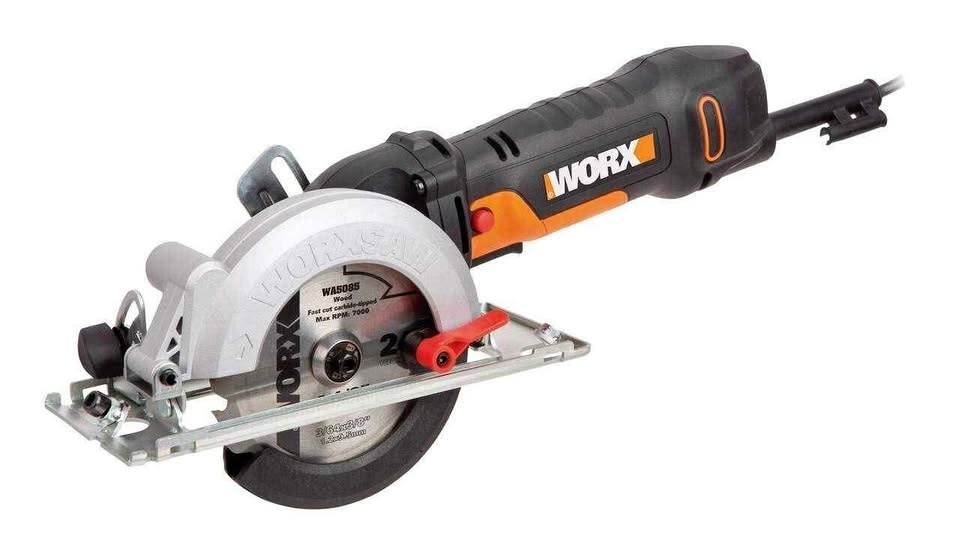 WORX WX439L 4.5A Compact Circular Saw with Carbide-Tipped Blade & Dust Port. 4000 RPM for fast cutting. Depth adjustment. 0-45° bevel adjustment. Used like new