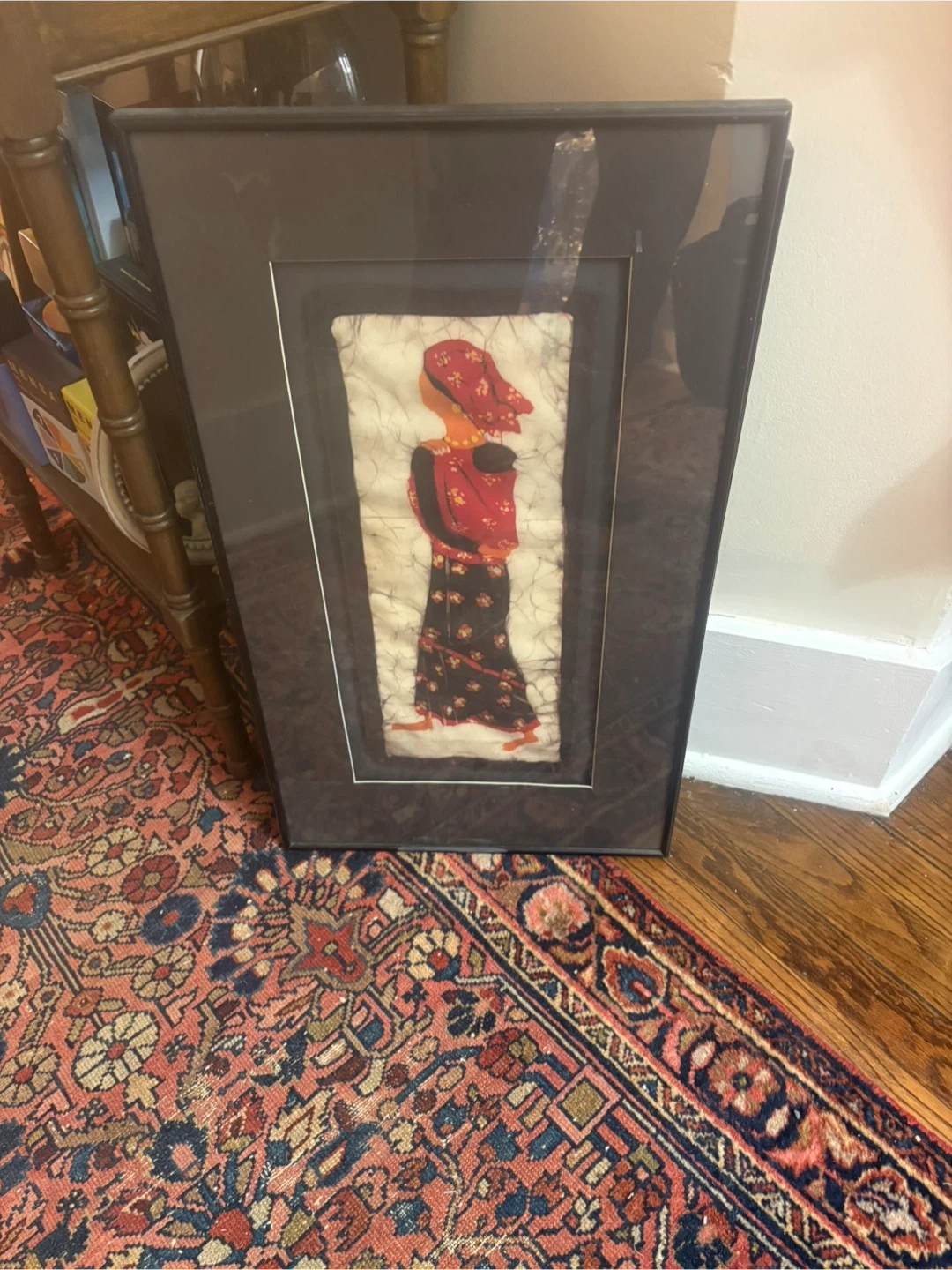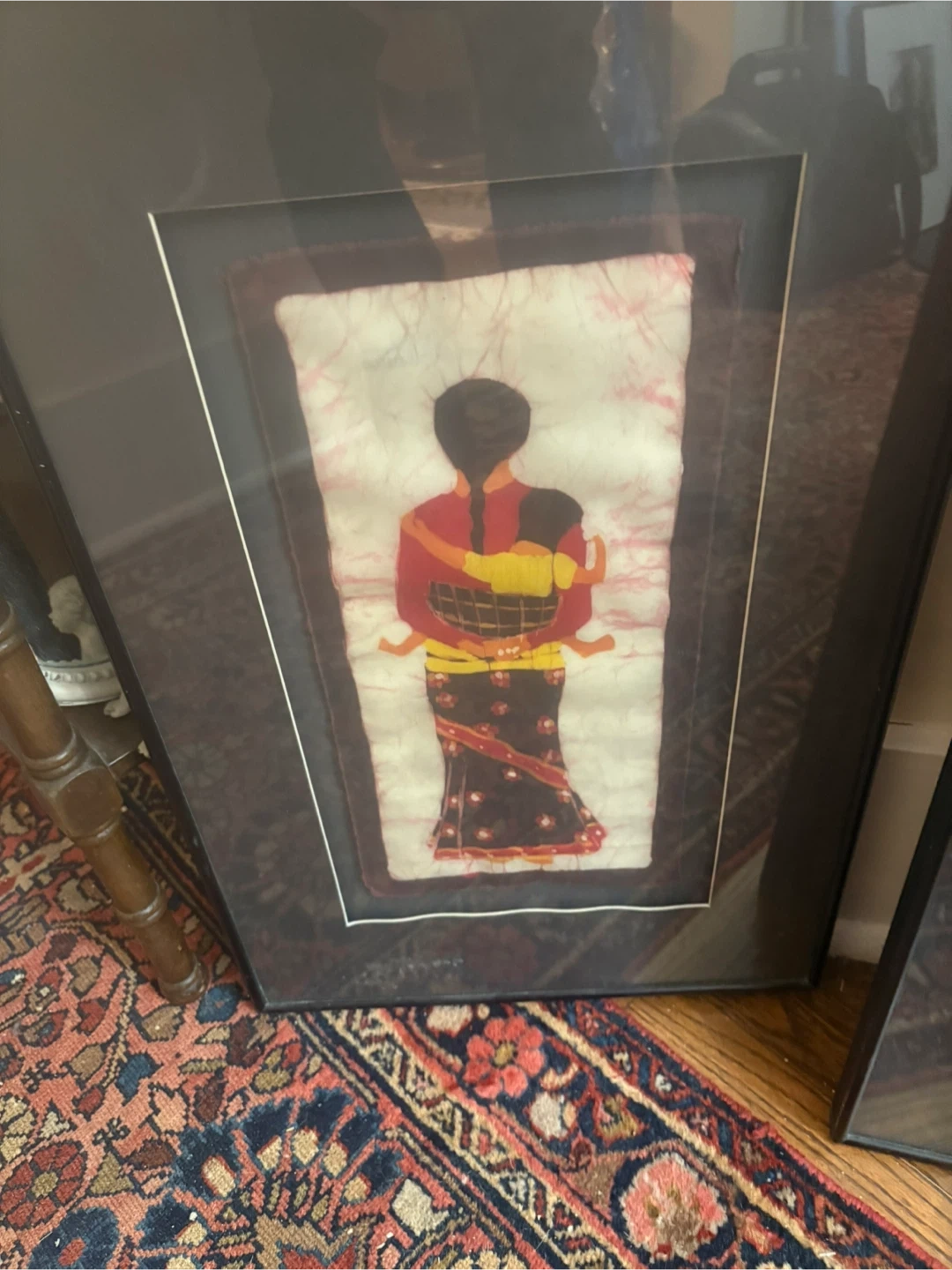 This is a framed batik art piece depicting a woman carrying a child. The artwork is detailed and colourful. It's ready to be hung on your wall! Priced for the pair at $50.00 which is $25 each Karrot estimates them at $45 each so these are a deal!