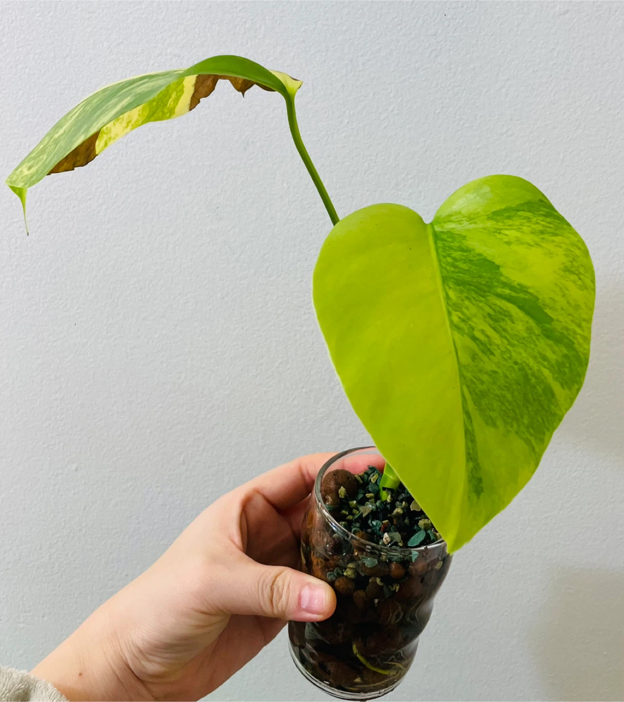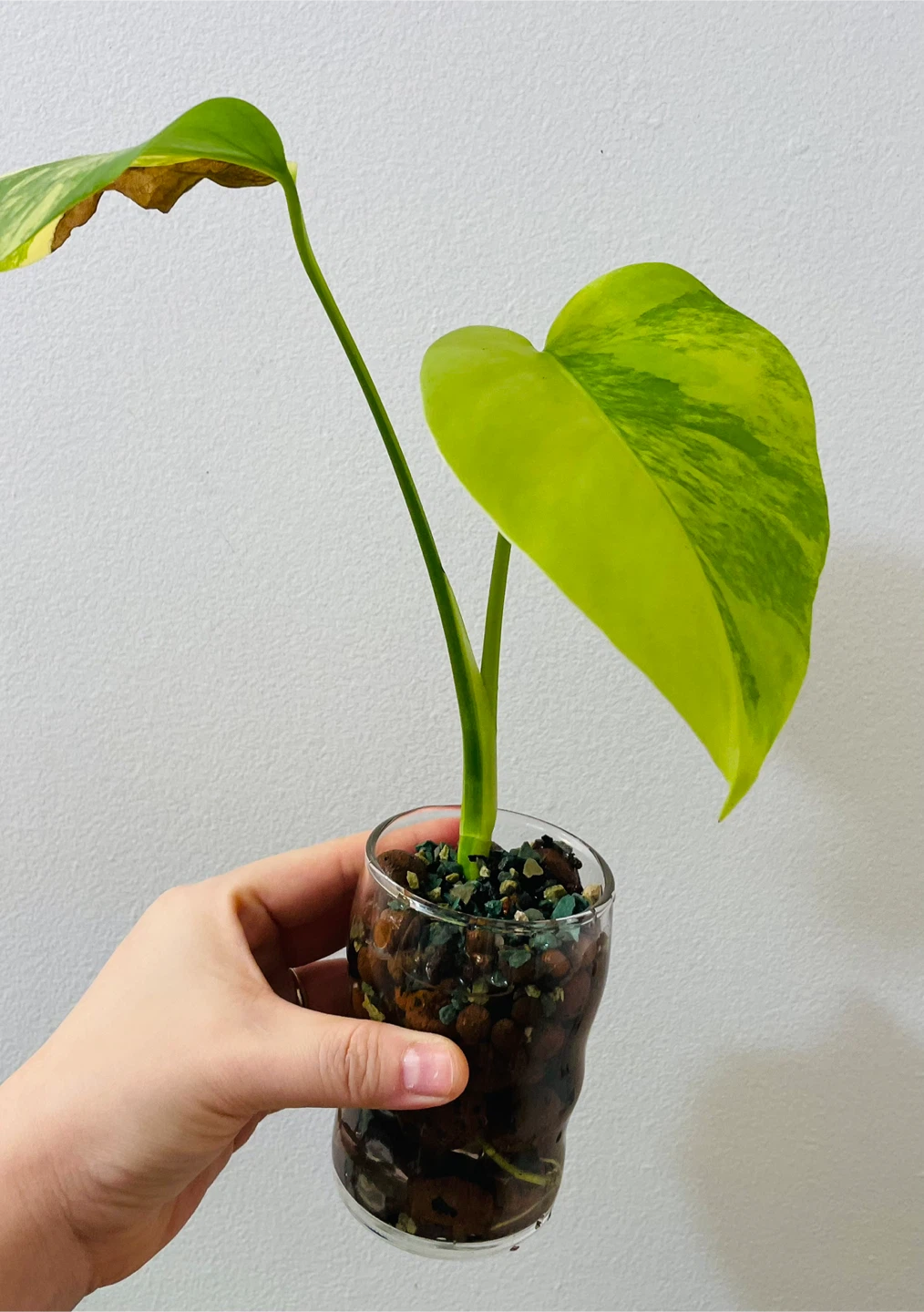 Healthy Monstera Aurea with strong roots and active new growth. Currently established in LECA (semi-hydro) for easy maintenance and pest prevention. Requires bright indirect light and a balanced nutrient solution; suitable for intermediate growers.