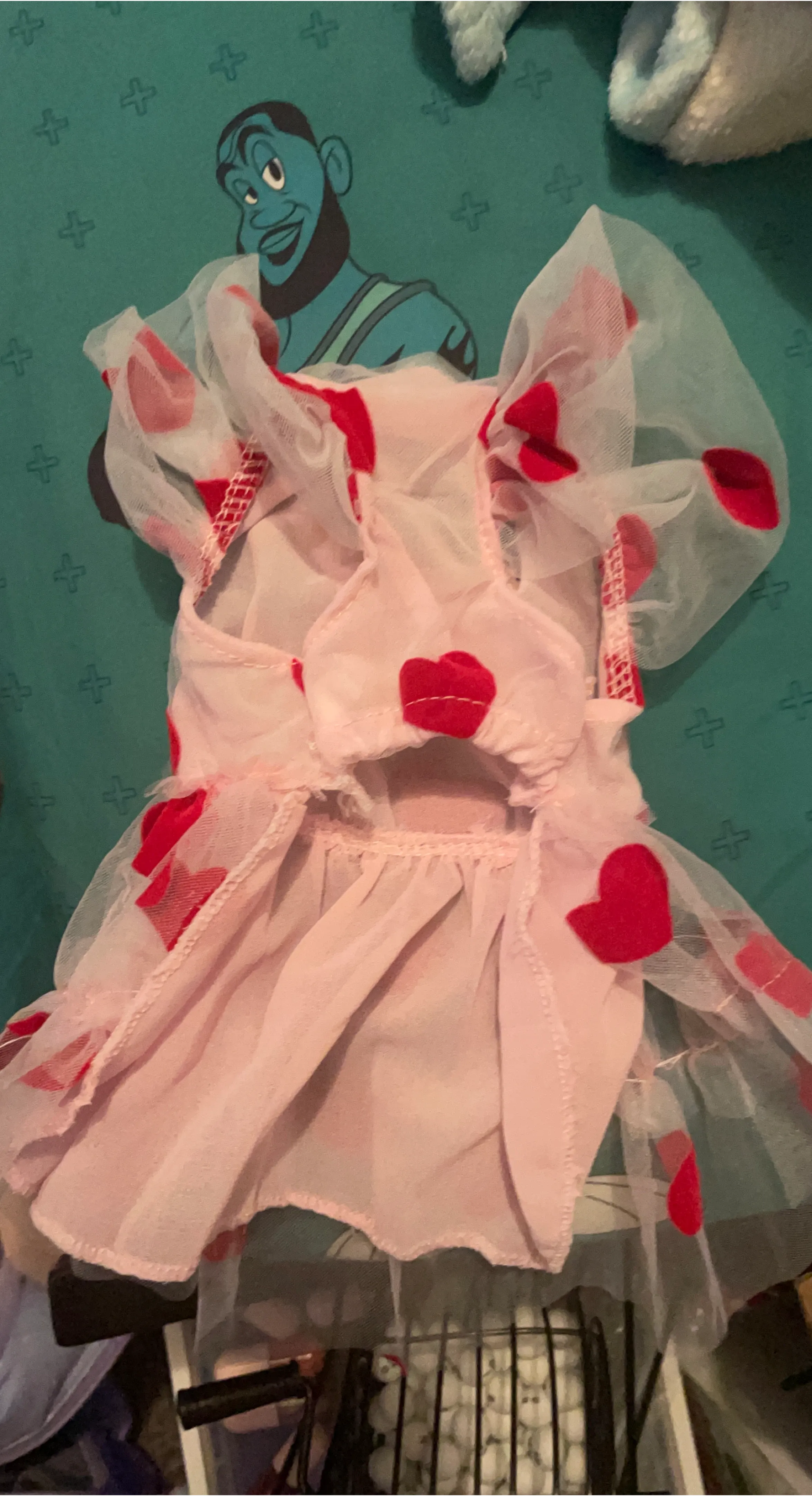 Pink dog dress with red hearts