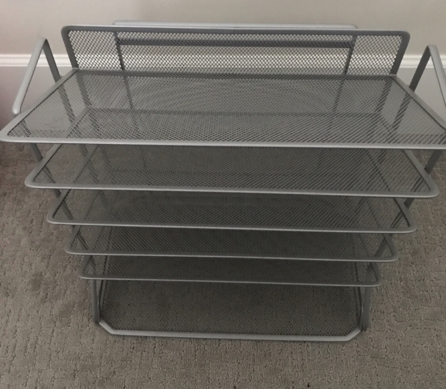 5 tier mesh filer and letter organizer dimensions are 16 x 9 x 17. Also selling Canadian criminal law textbooks. $7. each or 4 for $25.