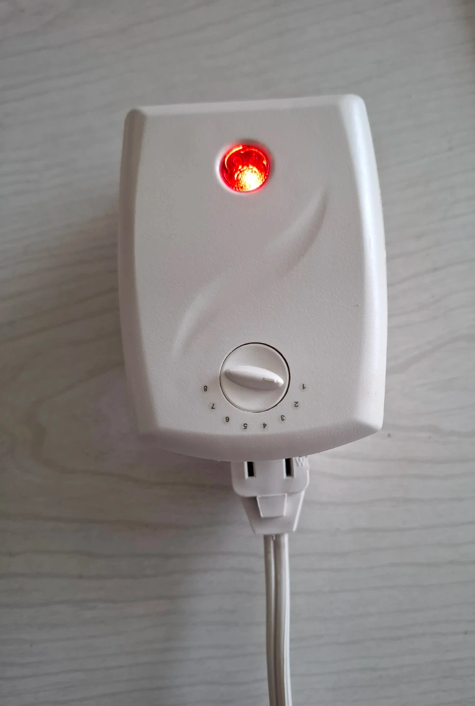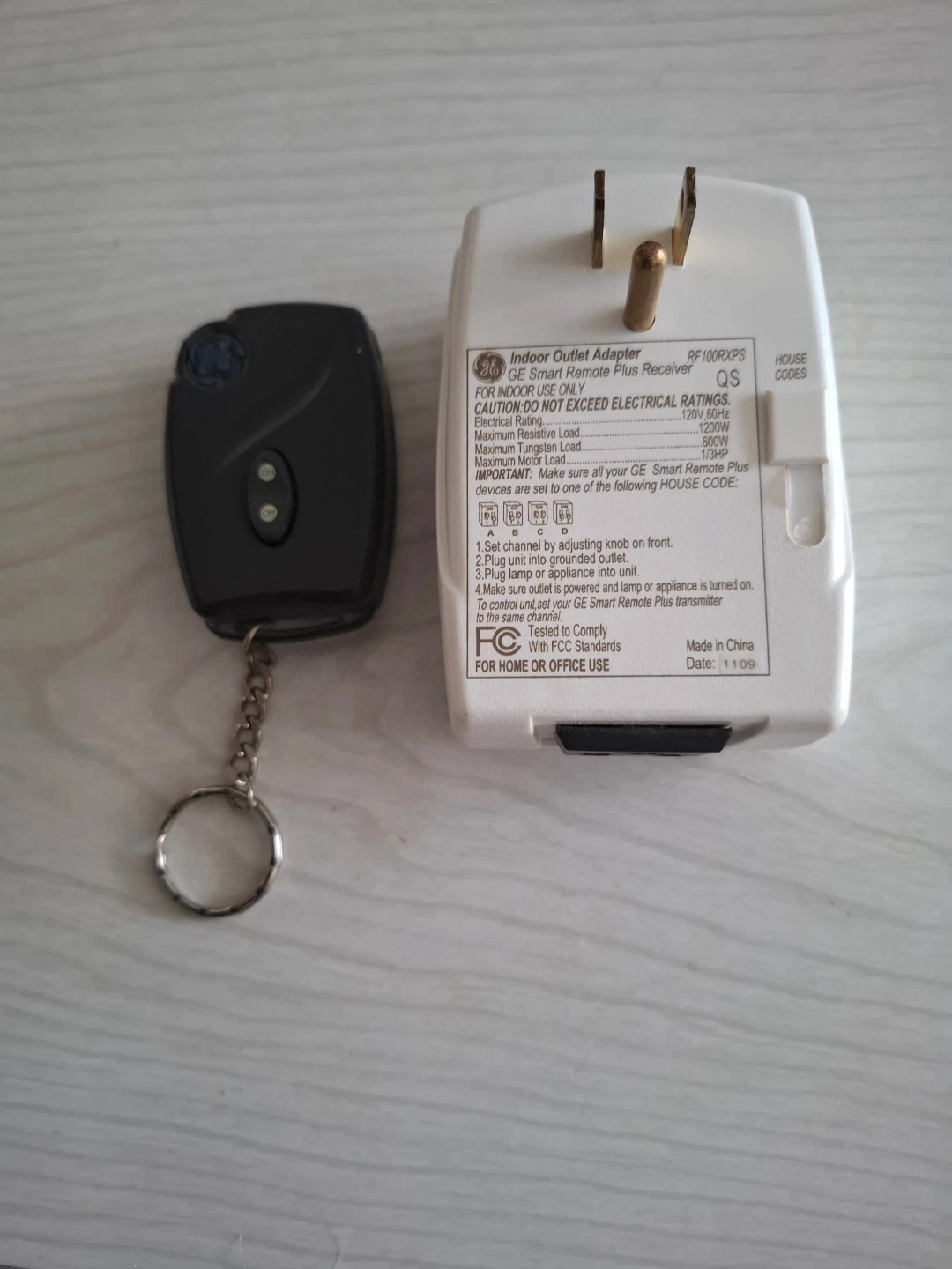 This GE Indoor Outlet Adapter lets you control lamps and appliances remotely; this used adapter is in good working condition. The Smart Remote Plus receiver has a maximum resistive load of 1250W and a maximum tungsten lamp load of 600W. It also comes with its original remote.