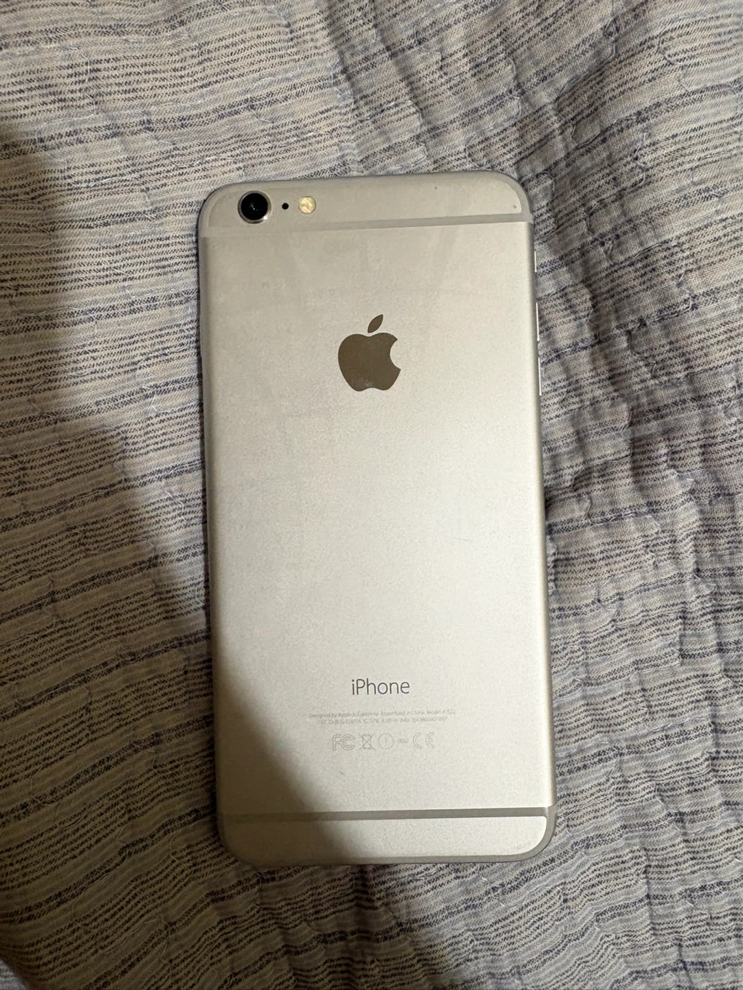 Used Apple iPhone 6 plus in silver. It's a reliable smartphone that needs to be plugged in mostly. Battery needs to be replaced. Back Camera also glitchy. Can be used for parts or just a backup phone for car that’s plugged in.