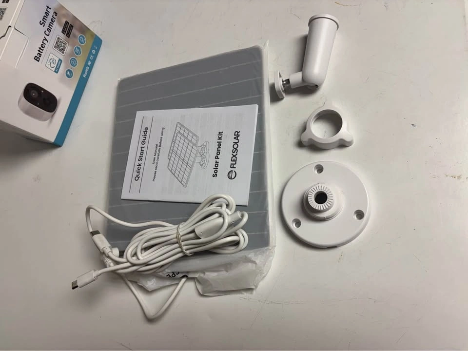 GMK outdoor security camera in great condition. Wireless and easy to install, powered by a 4500mAh battery and includes ONE 6W solar panel, so no wiring needed. Records in 2K with color night vision and AI motion detection. You can check the camera anytime from your phone. Includes two way talk and a built in siren for added security. Perfect for yard, driveway, garage, or cottage.