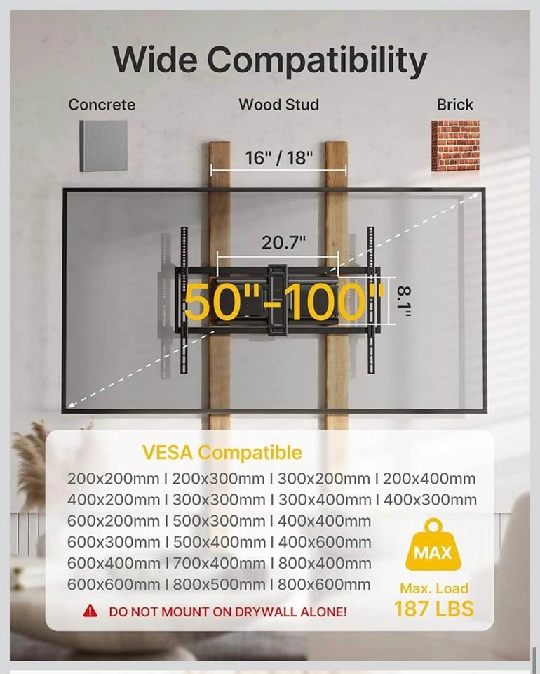 The ultimate viewing experience for your large TV! Premium, slim, and heavy-duty. Price: Only $39. Condition: Open Box - New. Fits: Large TVs from 50" up to 100". Weight Capacity: Heavy-duty, holds up to 185 lbs. Full Motion: Swivel, Tilt, and Extension with Dual Articulating Arms for the perfect angle. Ultra Slim: Low-profile design that looks great on any wall. FREE DELIVERY to: Oak Lawn | Orland Park | Chicago | Crestwood (and nearby).