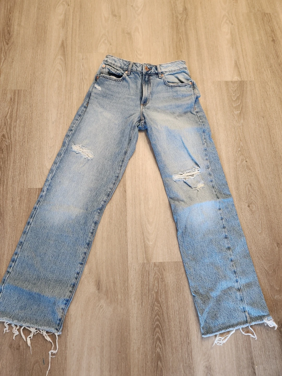 My daughter wore them less then a handful of times. Garage brand light wash denim jeans. Features a relaxed fit with some distressing and frayed hems. Size 00.