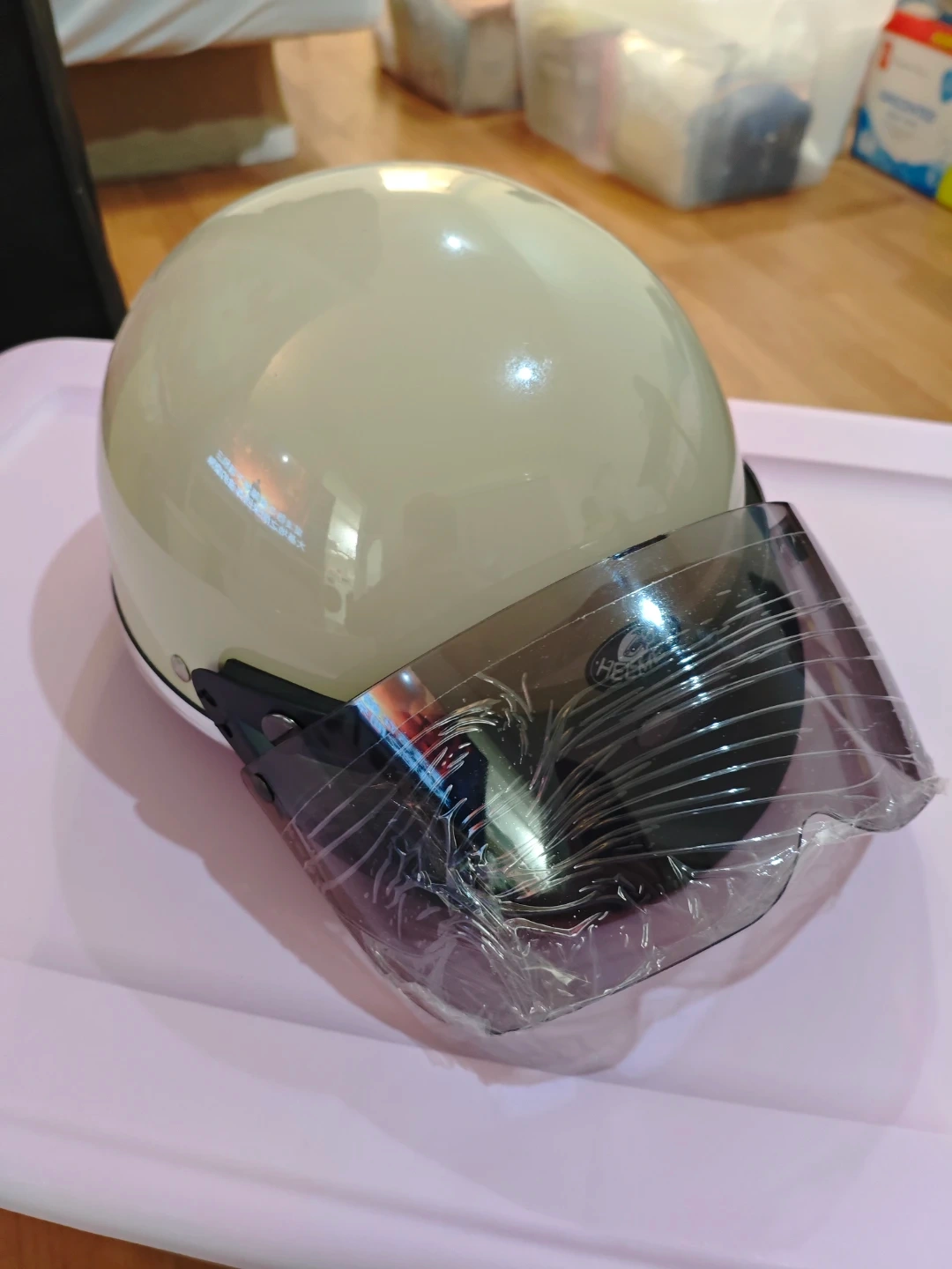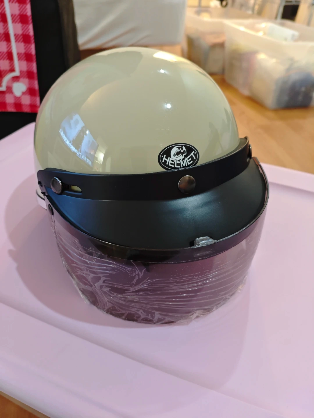 This is a classic style motorcycle helmet. It has a flip-up visor for clear visibility. This helmet is designed for riders looking for a retro look and essential protection.