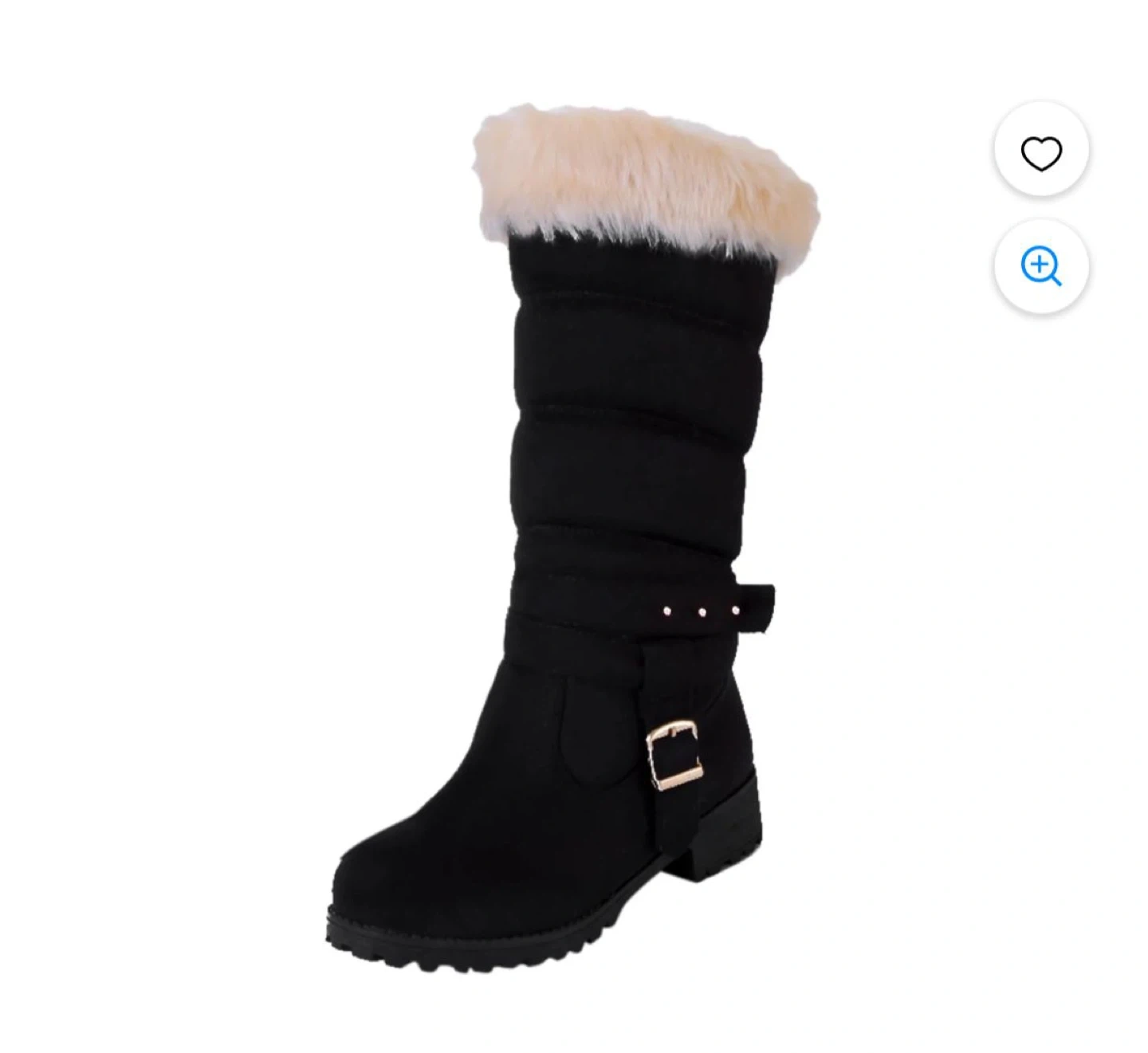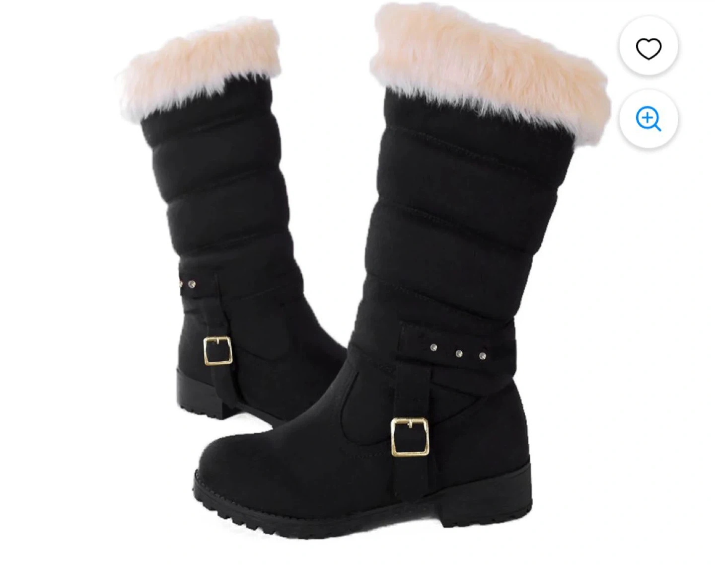 QHFBli Womens Snow Boots Women's Fashion Belt Heel Buckle Boots Warm Mid Calf Winter Thick Sole Comfortable Traction Durable Outdoor Cold