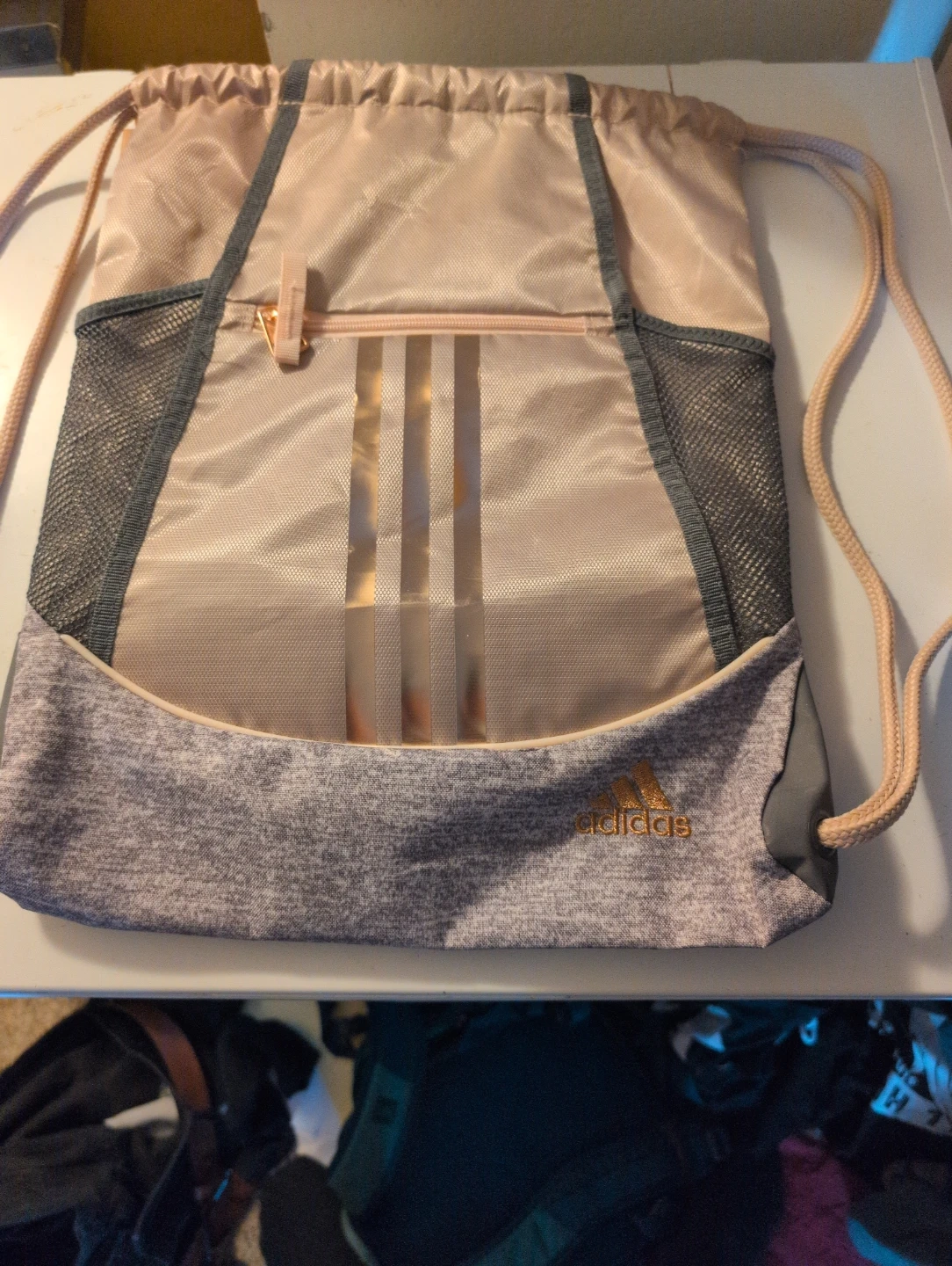 Adidas drawstring bag in a lovely pink and gray colour combo! It's in great shape and ready for your gym gear or everyday essentials