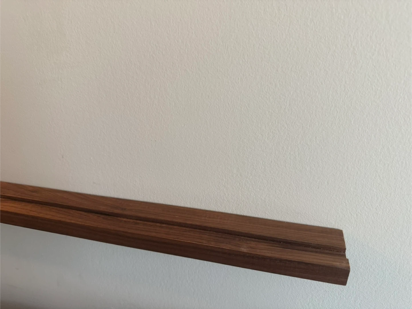 Vinyl record display ledge shelves. Made of hardwood (walnut).