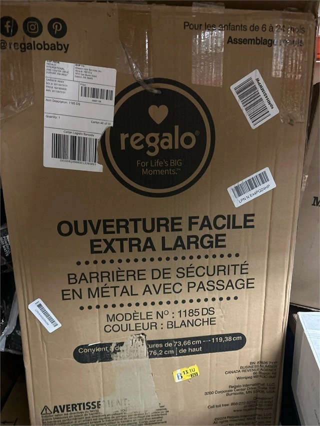 Brand new in open box. Complete. Pickup is near Kipling and Evans. Expands to fit openings from 73cm to 127cm wide and stands 79cm tall. Includes 15cm and 30cm extension kit. Pressure mounted design with easy set up and no tool required. Walk through door with safety locking feature. American society for testing and materials certified. Great for use with children and pets. Cash accepted.