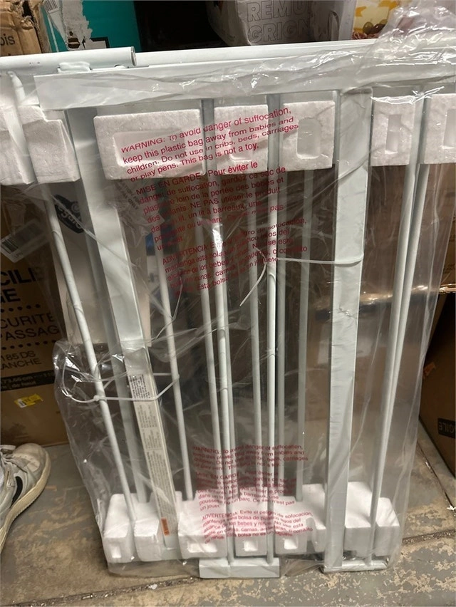 Brand new in open box. Complete. Pickup is near Kipling and Evans. Expands to fit openings from 73cm to 127cm wide and stands 79cm tall. Includes 15cm and 30cm extension kit. Pressure mounted design with easy set up and no tool required. Walk through door with safety locking feature. American society for testing and materials certified. Great for use with children and pets. Cash accepted.