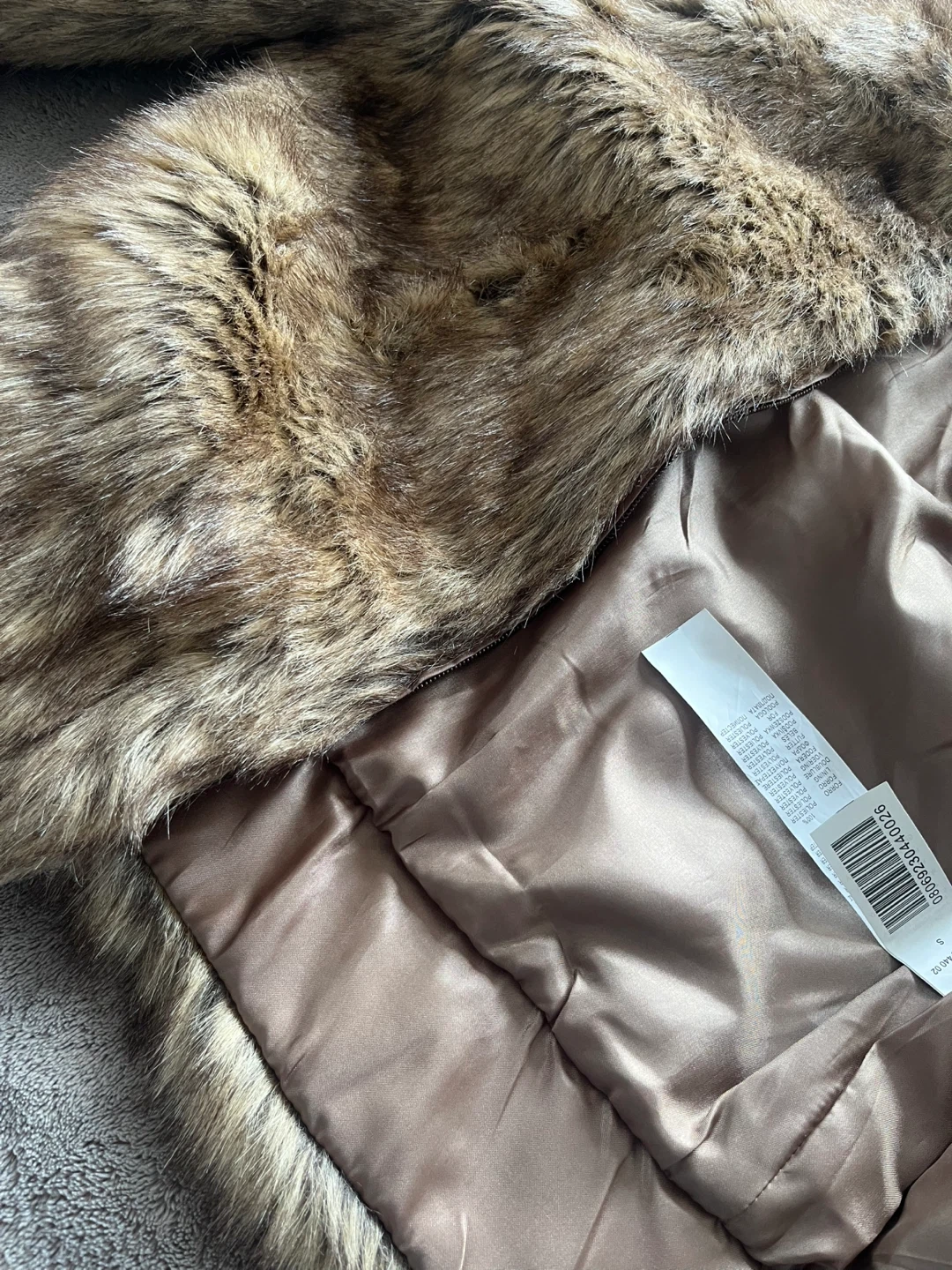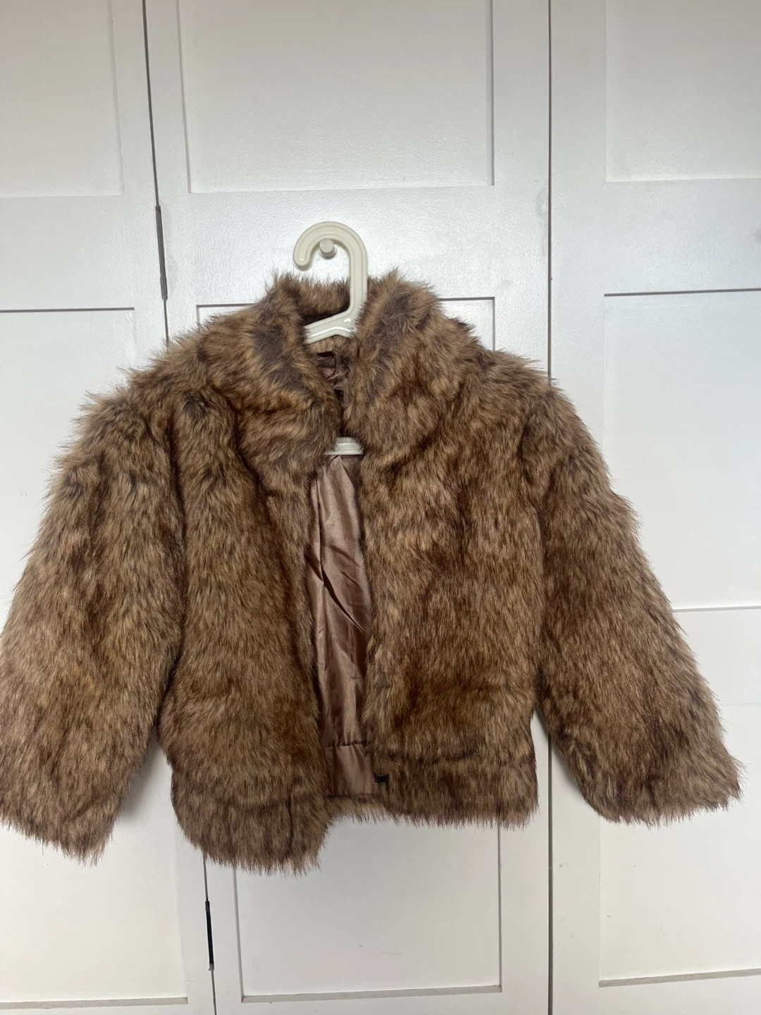 Here's a cute faux fur jacket from Stradivarius. It's a size small and would be a great addition to your wardrobe for a night out or a cozy day!