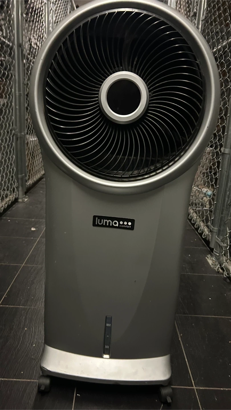 Luma Comfort portable air cooler for keeping spaces cool. Features multiple modes including cooler and humidifier settings. It has adjustable speed and swing functions. On wheels for easy mobility. Best feature you can even add ice water to the bin to make it a great little temporary AC. Great for cooling those long shotgun hallways or pushing AC throughout your apartment from front to back!! Only been used a handful of times and has a few light scratches from storage. Works great!