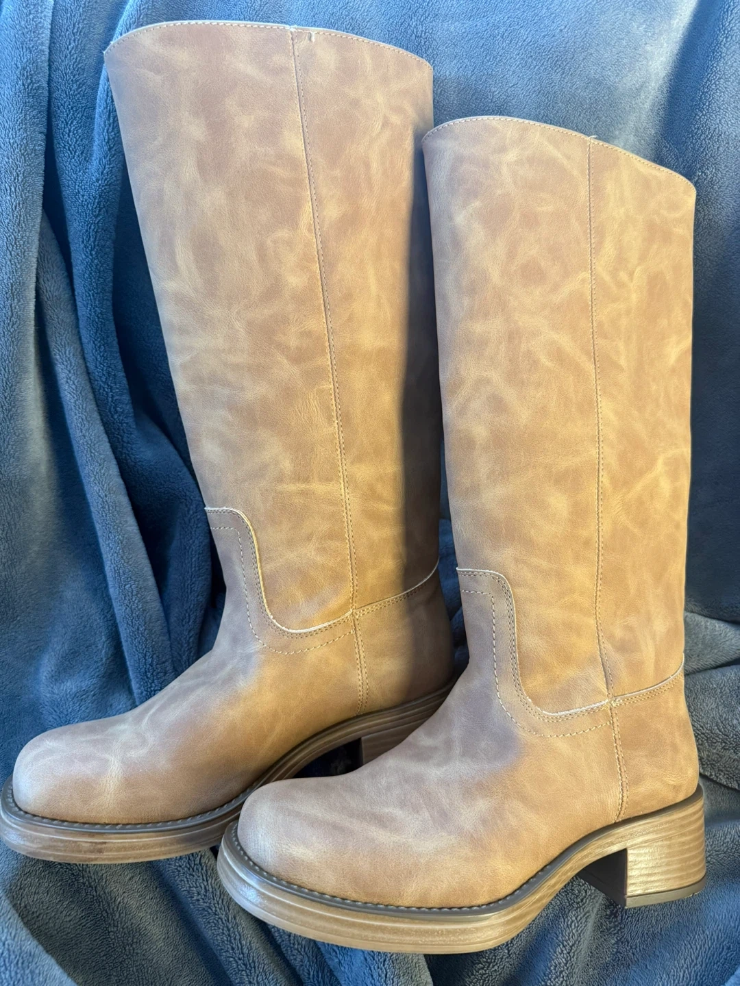 New no box Steve Madden Millena boots. These tan boots feature a smooth finish and a low block heel. Made with durable materials for everyday wear.