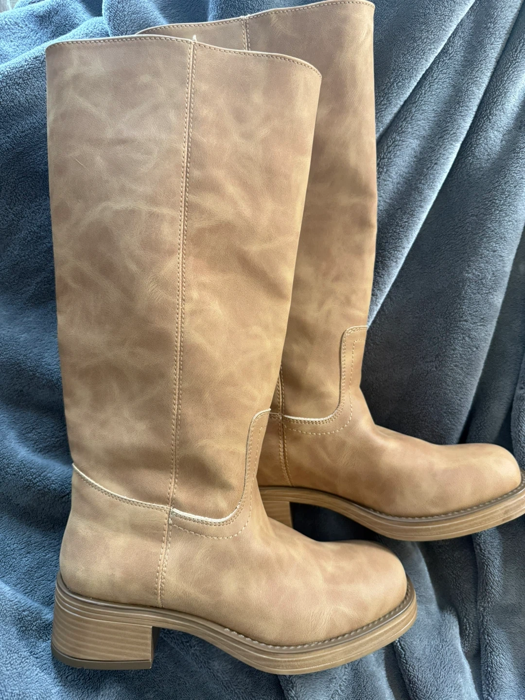 New no box Steve Madden Millena boots. These tan boots feature a smooth finish and a low block heel. Made with durable materials for everyday wear.
