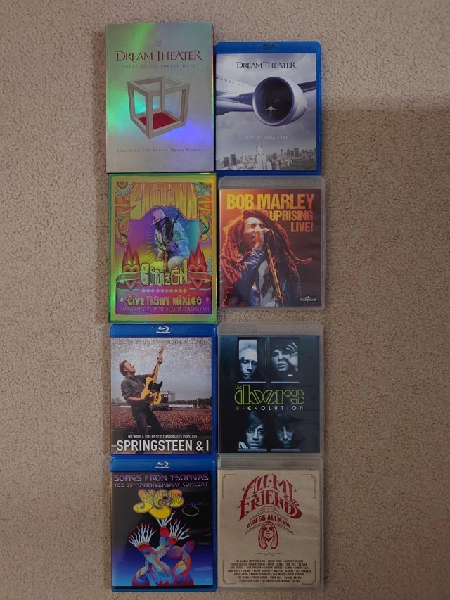 Selling misc. Classic Rock DVDs for $5 each, Blu-Rays for $7 each. Or take all (23 DVDs + 7 Blu-Rays) for $100 if buying together.