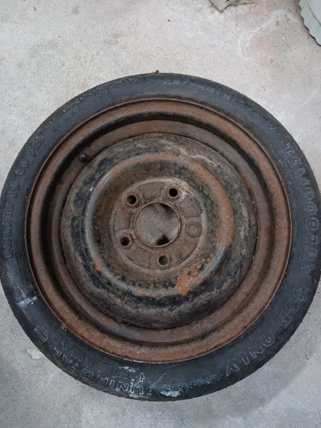 Buy & SellT125/70D15 Temporary Spare TireT125/70D15 Temporary Spare Tire$10Selling a T125/70D15 temporary spare tire. It shows signs of wear and rust.ConditionOkayWHERE TO MEETMy HomeView MapSELLERverifiedJasonRichvale1104 reviews0 chats·0 favorites·13 viewsSEND CHAT TO SELLERHi Jason! I’m interested in your listing.Hi Jason! I’m interested in your listing.Get the Karrot app to chatSign In to chat