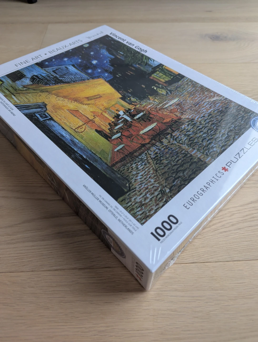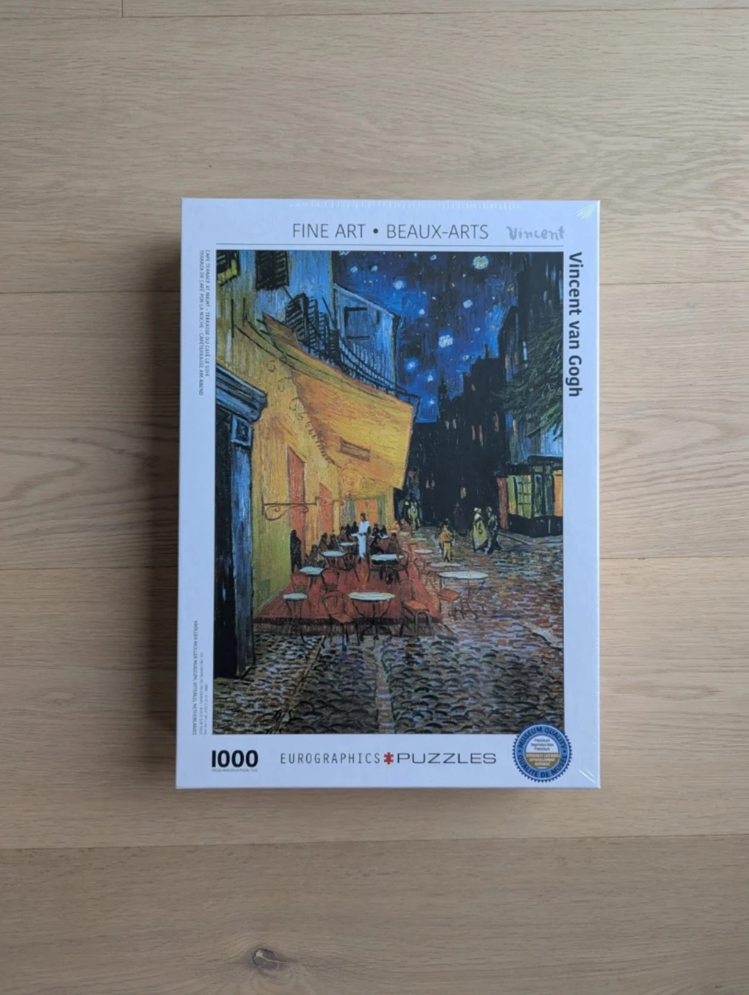 Buy & SellEurographics Puzzle Vincent van Gogh Cafe TerraceEurographics Puzzle Vincent van Gogh Cafe Terrace$15A 1000-piece Eurographics jigsaw puzzle featuring Vincent van Gogh's painting 'Cafe Terrace at Night'. Brand New and fully sealed. ConditionNewWHERE TO MEETHighland Hills MallView MapSELLERverifiedCindy KHighland West650 reviews0 chats·0 favorites·3 viewsSEND CHAT TO SELLERHi Cindy K! I’m interested in your listing.Hi Cindy K! I’m interested in your listing.Get the Karrot app to chatSign In to chat