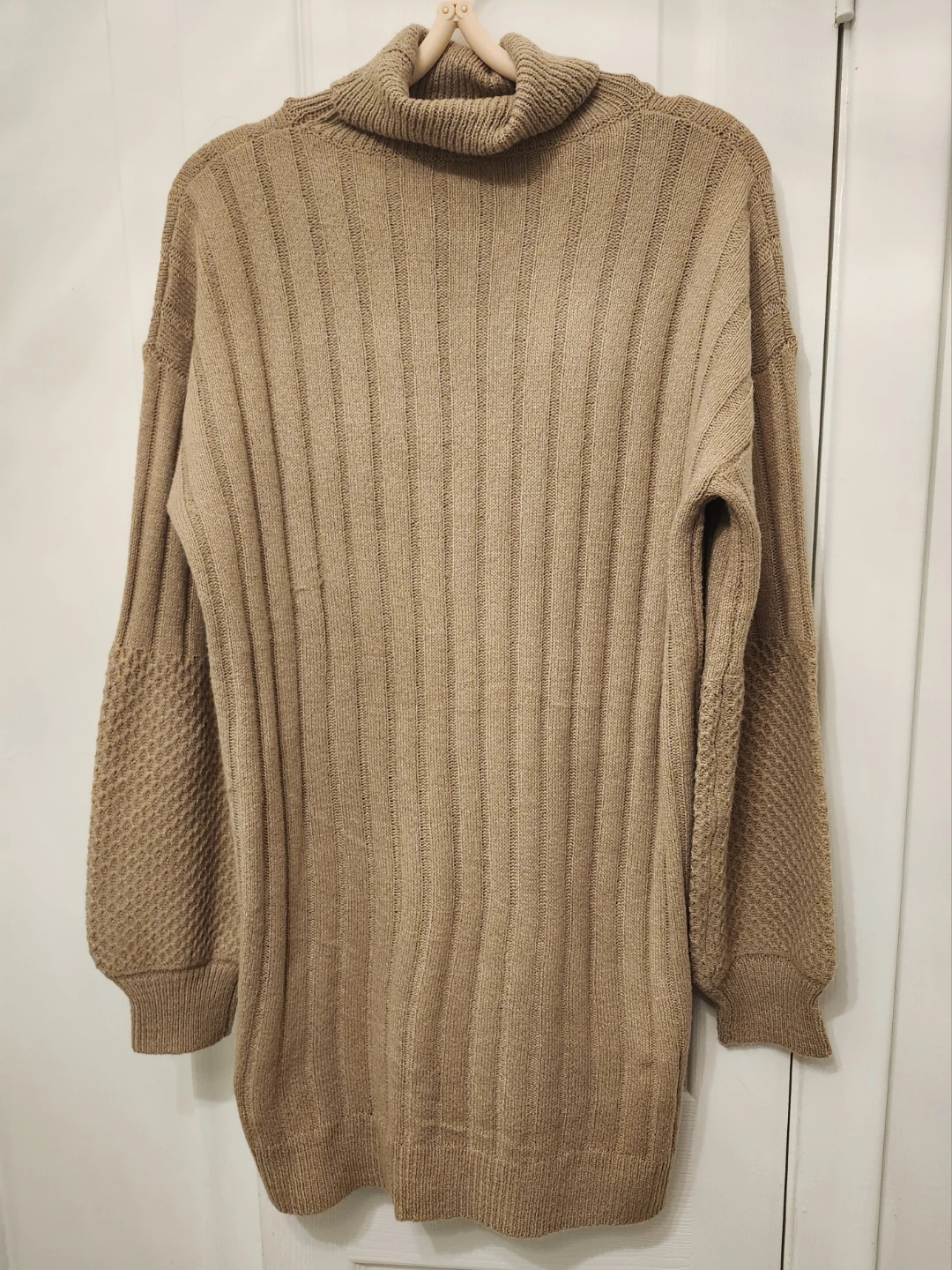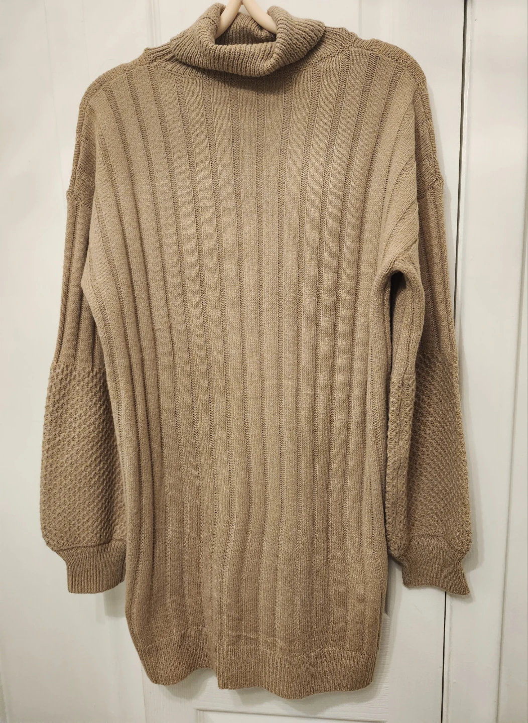 Tan Turtleneck Ribbed Knit Sweater Dress - Size S - USED ONCE