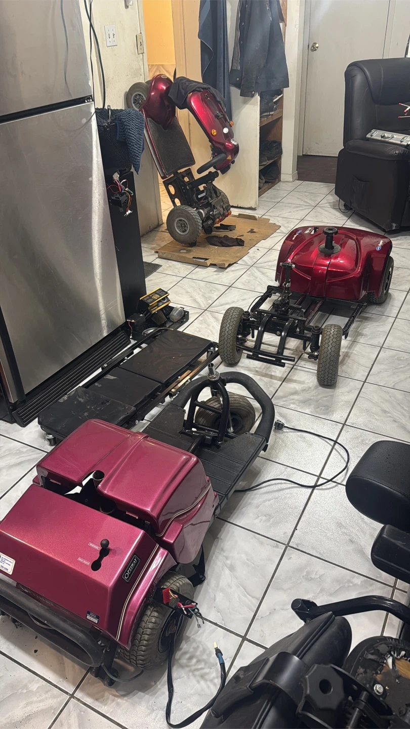 Pegasus mobility scooter parts available. Includes body panels, frame, and wheels. Selling as is or complete lot of 4 for every day use or project.