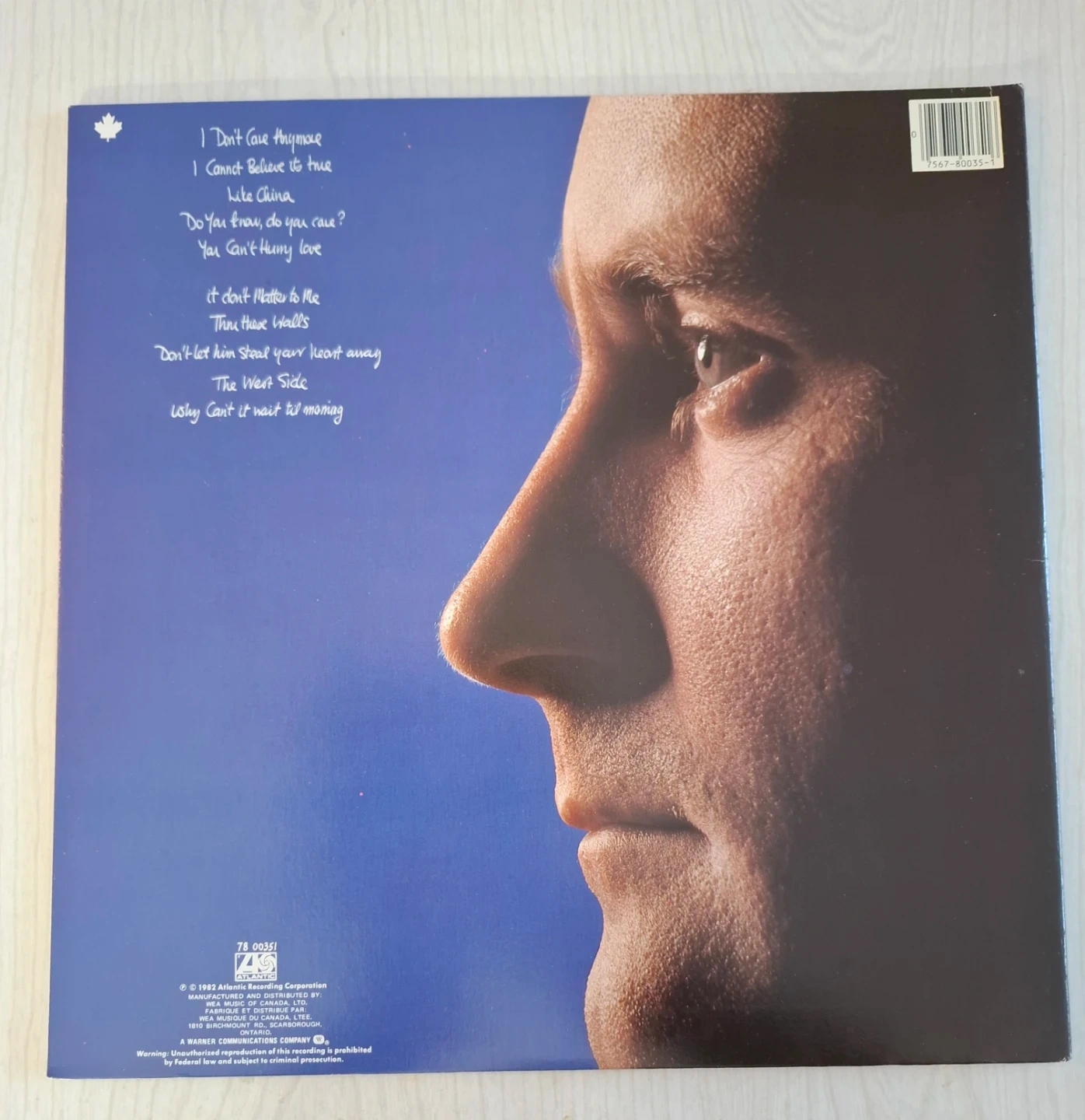Phil Collins' 1982 album, Hello, I Must Be Going! Features hits like 'I Don't Care Anymore' and 'You Can't Hurry Love'. This is the original vinyl record.