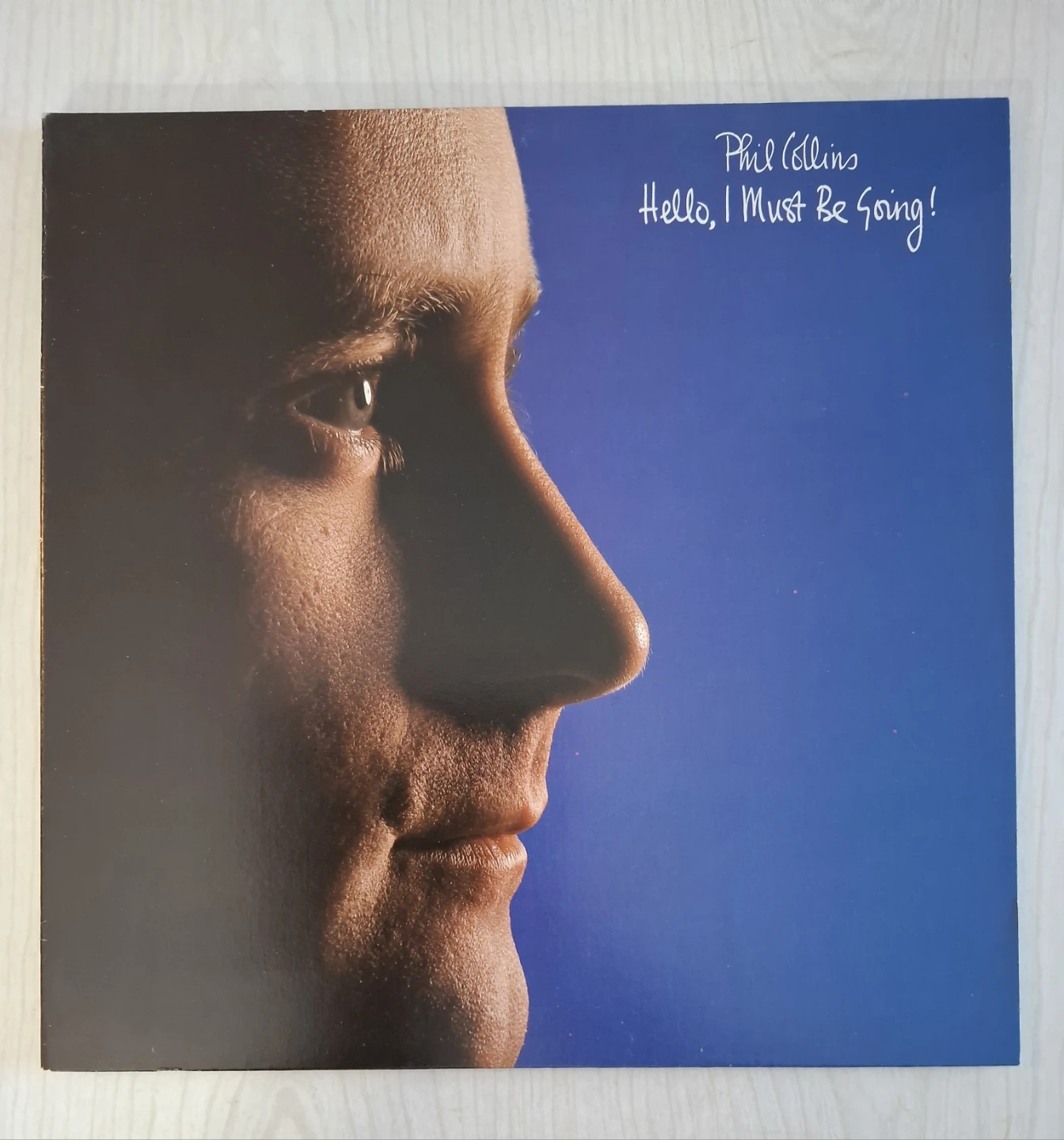 Phil Collins' 1982 album, Hello, I Must Be Going! Features hits like 'I Don't Care Anymore' and 'You Can't Hurry Love'. This is the original vinyl record.
