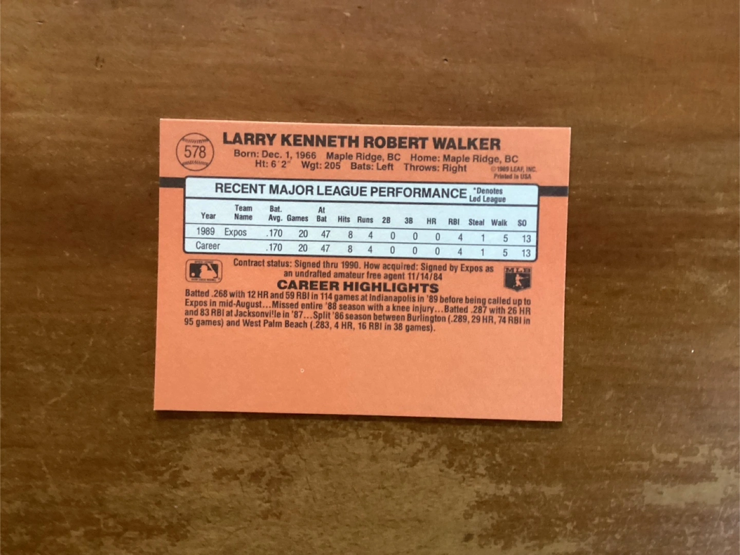 1990 DONRUSS LARRY WALKER ROOKIE CARD #578 Montreal Expos