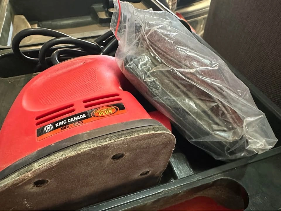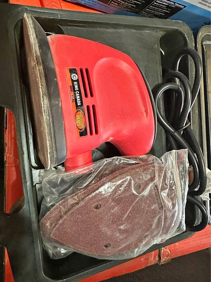 Handy King Canada 8303 palm sander. Comes with its own case and a bag of extra sanding pads. Great for various projects around the house or workshop.